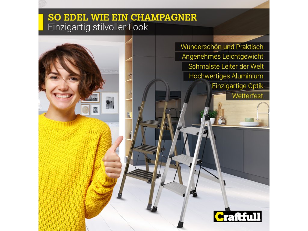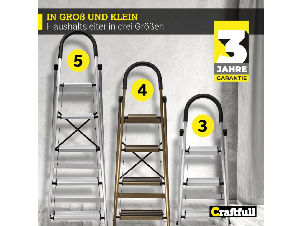 Neuveriteľné! Rebrík Craftfull Design CF-134A je dostupný v troch dĺžkach. Takže pre každú aplikáciu existuje správna veľkosť. Či už ide o premaľovanie steny, sťahovanie závesov alebo vyberanie riadu z hornej kuchynskej police.