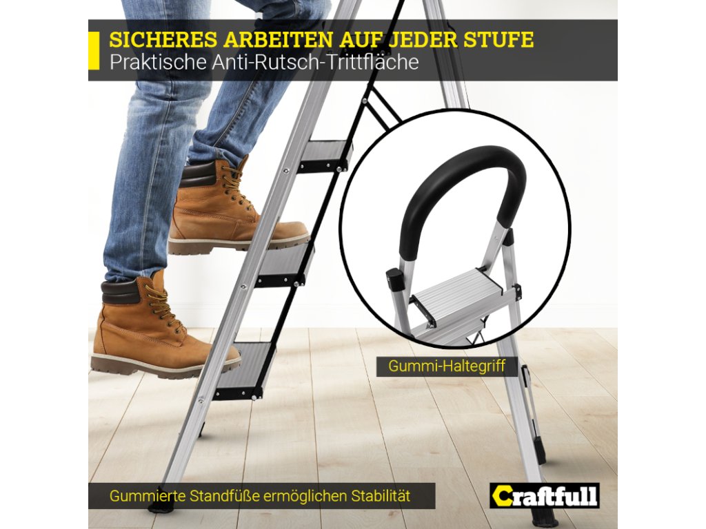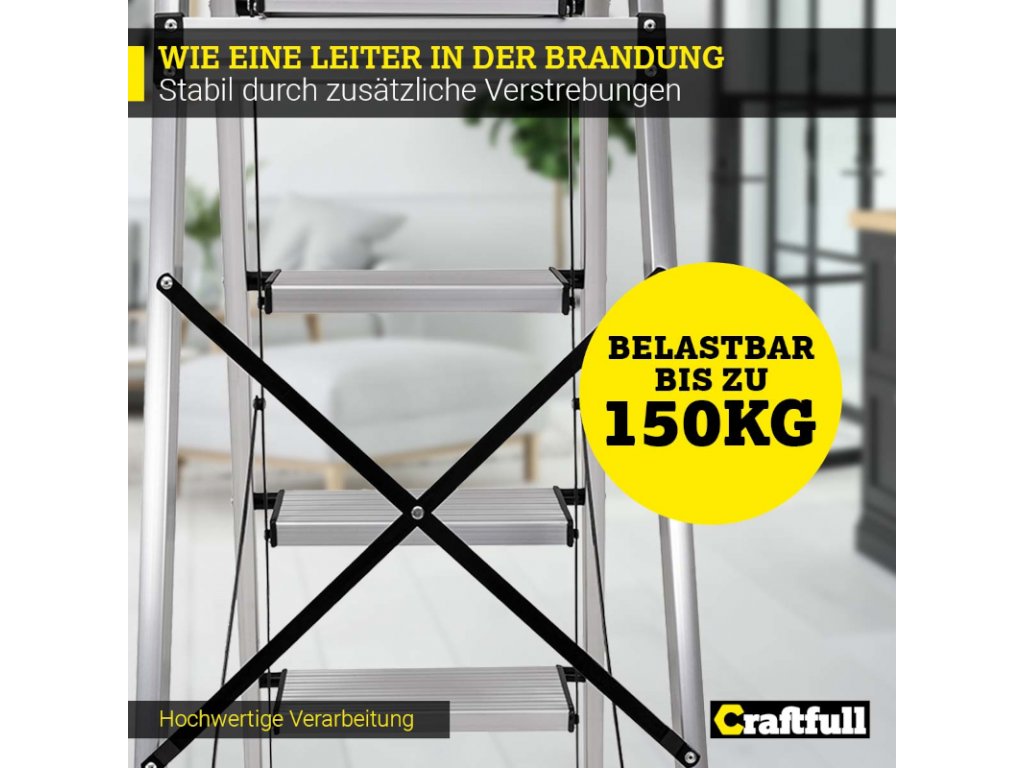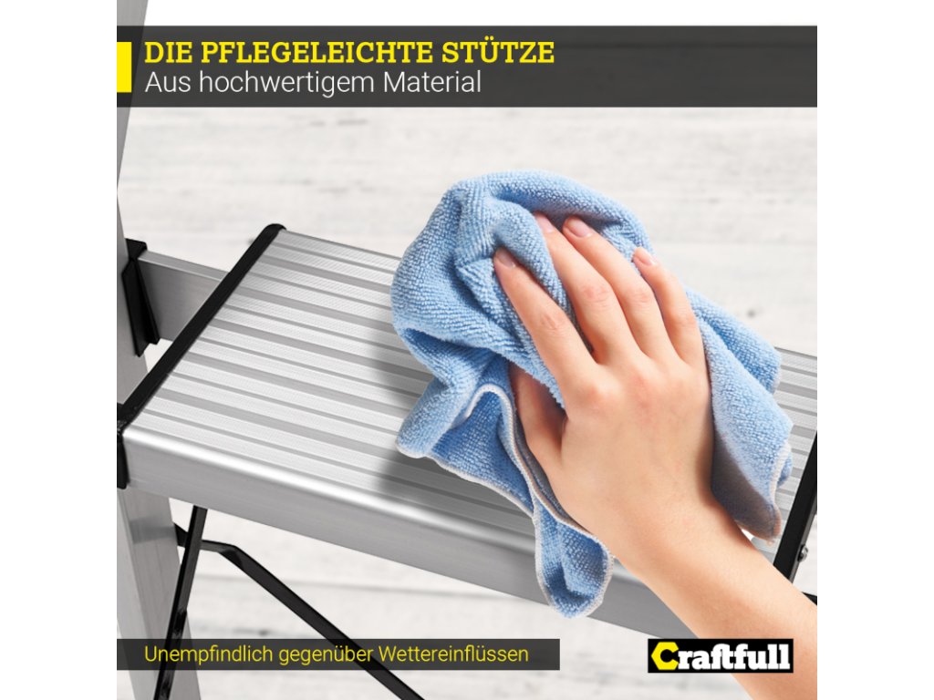Uľahčite si život s dizajnovým rebríkom Craftfull CF-134A. Hoci samotný rebrík má nízku hmotnosť, vydrží zaťaženie až 150 kg . Vďaka vysokokvalitnému hliníku je mimoriadne odolný.