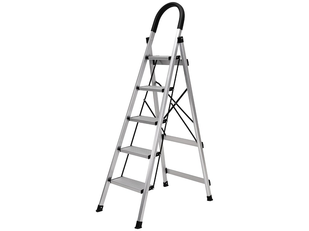 Vysoko kvalitný materiál pod dizajnom zostáva okom neviditeľný: prvotriedny hliník . Vďaka tomu je rebrík pre domácnosť obzvlášť ľahký a pohodlný na nosenie.