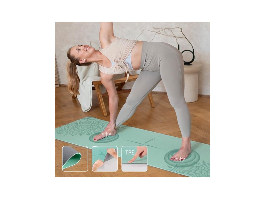 Podložka YM10 je vyrobená z dvoch vrstiev TPE materiálu, ktorý zaručuje výbornú priľnavosť a odolnosť proti deformácii. Vďaka mäkkosti a odpruženiu je cvičenie na nej pohodlné aj pri dlhších sedeniach. Protišmykový povrch podložky zaisťuje bezpečnosť a vodeodolnosť umožňuje jednoduché čistenie. Jej kompaktné rozmery (182 x 61 x 0,8 cm) ju robia vhodnou na cvičenie doma aj vonku. Podložka je ľahká a dodáva sa s transportnými popruhmi na jednoduché prenášanie.
