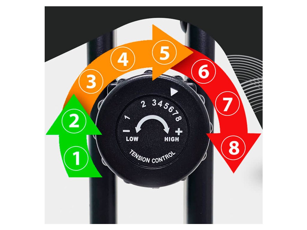 S 8 nastaviteľnými úrovňami odporu ponúka výzvu pre každého, od začiatočníkov až po pokročilých. Moderný LCD displej vám poskytne prehľad o čase, spálených kalóriách, rýchlosti, vzdialenosti a pulze, čím umožní presnú kontrolu vášho tréningu.