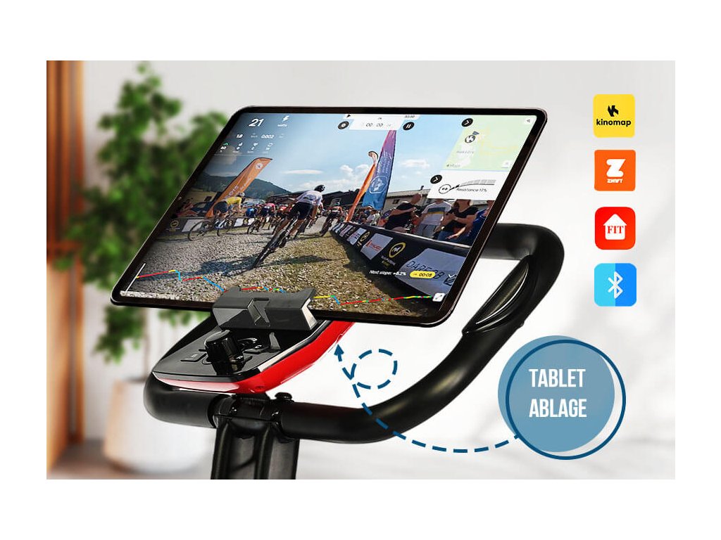 Držiak na tablet vám umožní sledovať obľúbené médiá počas cvičenia, a ak hľadáte ešte väčšiu rozmanitosť, jednoducho sa pripojte k aplikácii Kinomap, ktorá spraví váš tréning pestrejším a interaktívnejším.