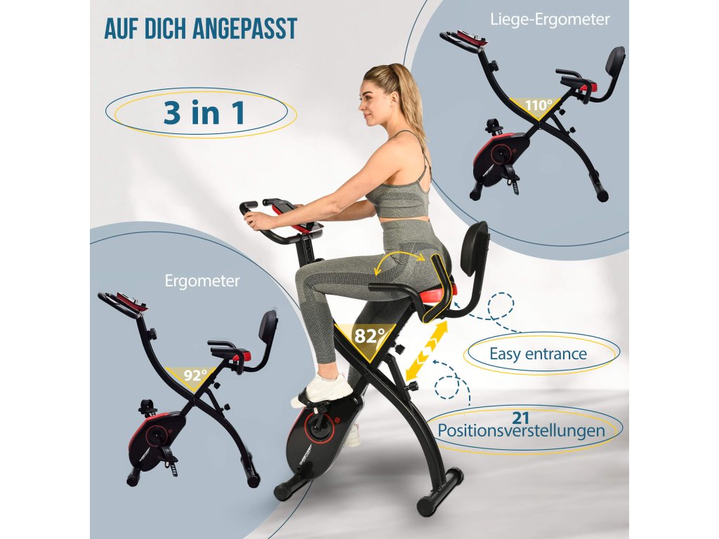 Pre ešte lepšiu prispôsobiteľnosť je možné bicykel nastaviť do troch rôznych polôh, aby ste dosiahli optimálne výsledky a komfort pri cvičení. Prispôsobiteľné pohodlie je zabezpečené 3 nastaviteľnými tréningovými pozíciami vrátane možnosti ležadlového nastavenia, a to všetko s maximálnou nosnosťou do 120 kg. Či už chcete posilniť kardiovaskulárny systém, svaly alebo zlepšiť celkovú kondíciu.