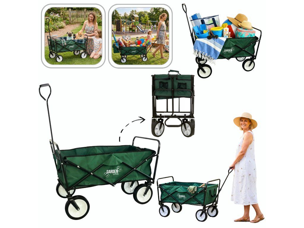 Objavte skladací vozík – ľahký, pevný a pripravený na akciu! Skvele sa hodí na prepravu náradia, rastlín, nákupov alebo dokonca batožiny počas výletov. Vďaka kompaktnému dizajnu a pohodlnému úchytu budú vaše každodenné povinnosti jednoduchšie než kedykoľvek predtým.