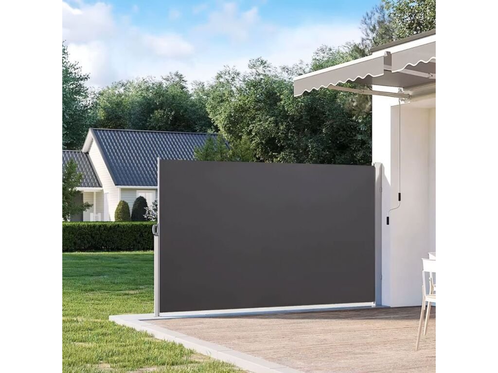 Táto skladacia bočná markíza je praktickým riešením pre vašu záhradu, balkón alebo terasu. Poskytuje ochranu pred slnkom a vetrom a zároveň zvyšuje súkromie. Jej mechanizmus automatického navíjania umožňuje rýchle a jednoduché otváranie a zatváranie, čím sa zvyšuje pohodlie. Vodotesná a UV odolná tkanina (180 g/m² polyester) zaisťuje odolnosť, zatiaľ čo práškovo lakovaný oceľový rám zaisťuje pevnú konštrukciu. Inštalácia je jednoduchá a nevyžaduje žiadne špeciálne nástroje. Dva stĺpiky sa dajú ľahko pripevniť na stenu alebo zem pre väčšiu stabilitu a bezpečnosť vďaka priloženému montážnemu materiálu.