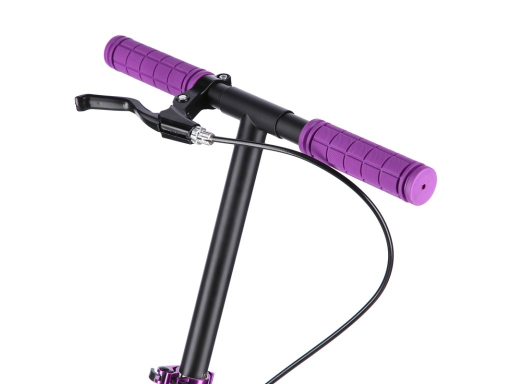 Zadný blatník slúži ako prítlačná brzda, ktorá ešte viac zvýrazňuje brzdný účinok mechanickej brzdy ovládanej lankom z páčky na riadidlách, ktoré sú vybavené gumovými rukoväťami, ktoré zabezpečujú pevný a pohodlný úchop. Výšku riadidiel možno nastaviť do 3 úrovní v rozmedzí od 75 do 102 cm.