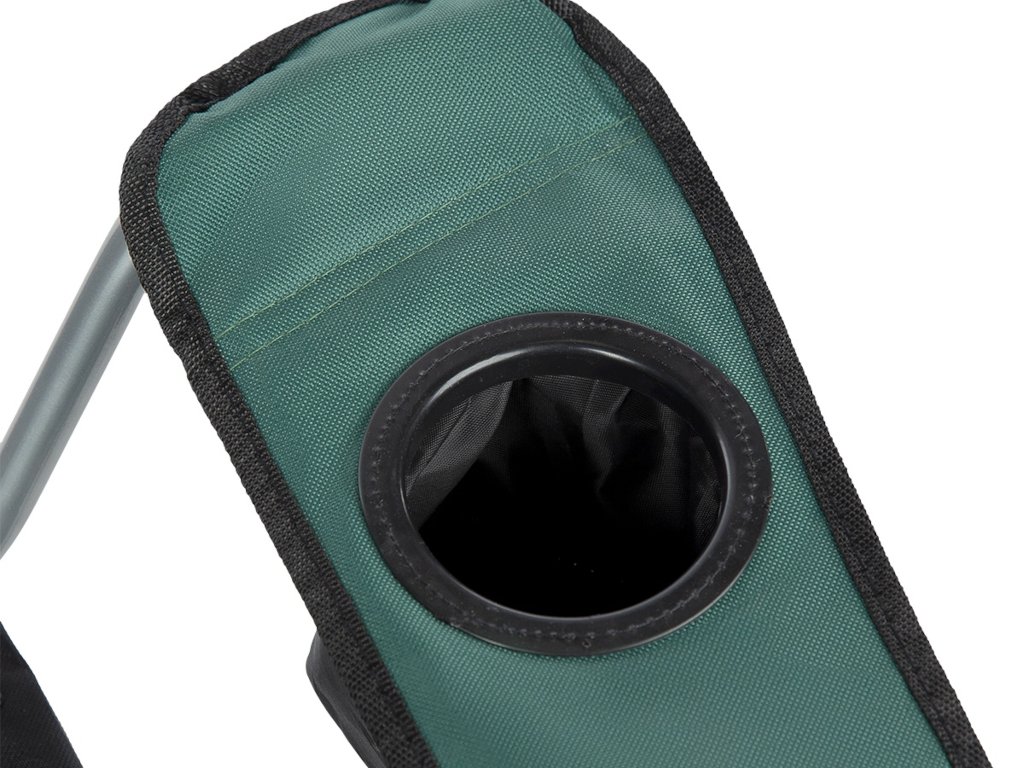 Operadlo a sedacia časť sú vyplnené mäkkým materiálom pripomínajúcim bavlnenú vatu pre maximálne pohodlie pri relaxácii v kresle. Podrúčky sú výškovo nastaviteľné jednoduchým posunutím operadla pozdĺž profilu konštrukcie. Pravá podrúčka je vybavená košíkom, do ktorého sa pohodlne zmestí menšia fľaša alebo vysoký pohár. Na jednoduché prenášanie možno stoličku zložiť a umiestniť do dodanej tašky so sťahovacou šnúrkou a ramenným popruhom.