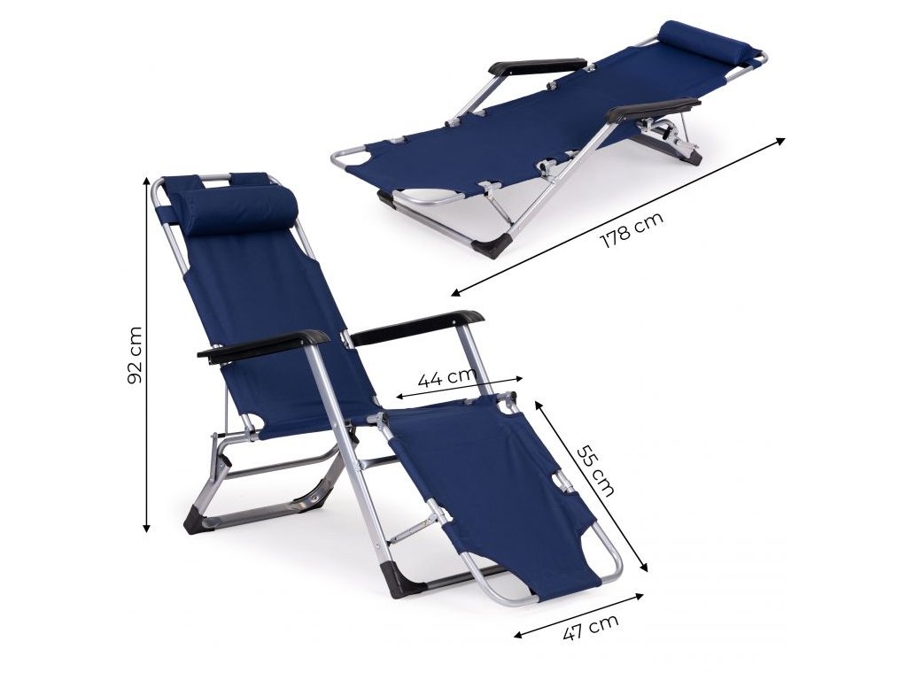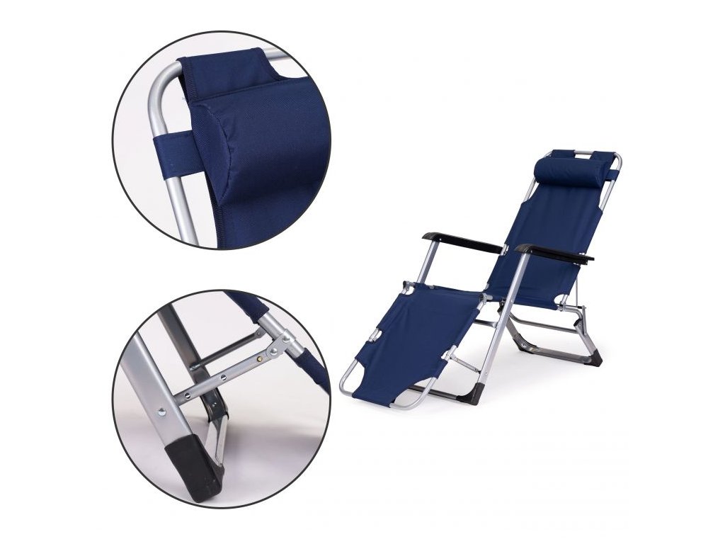 Lehátko sa dá veľmi ľahko uskladniť vďaka tomu že sa dá zložiť. Lehátko má všestranné využitie a je perfektné na záhradu, terasu, ale aj na pláž. Lehátko obsahuje hlavovú opierku pre väčšie pohodlie.