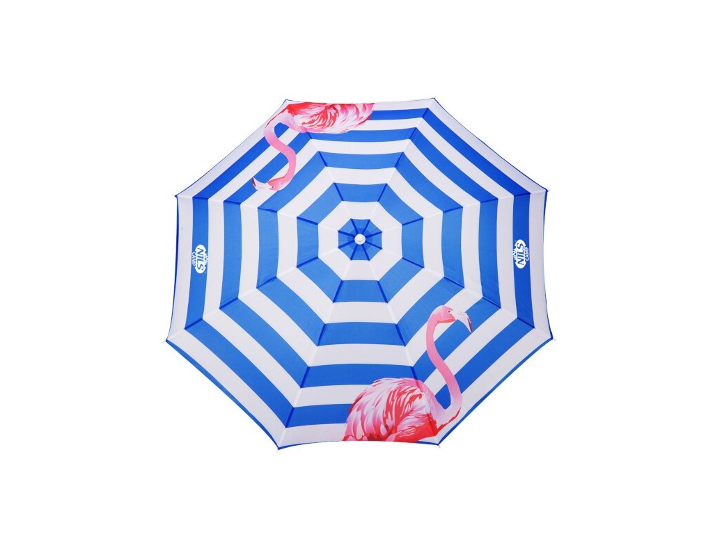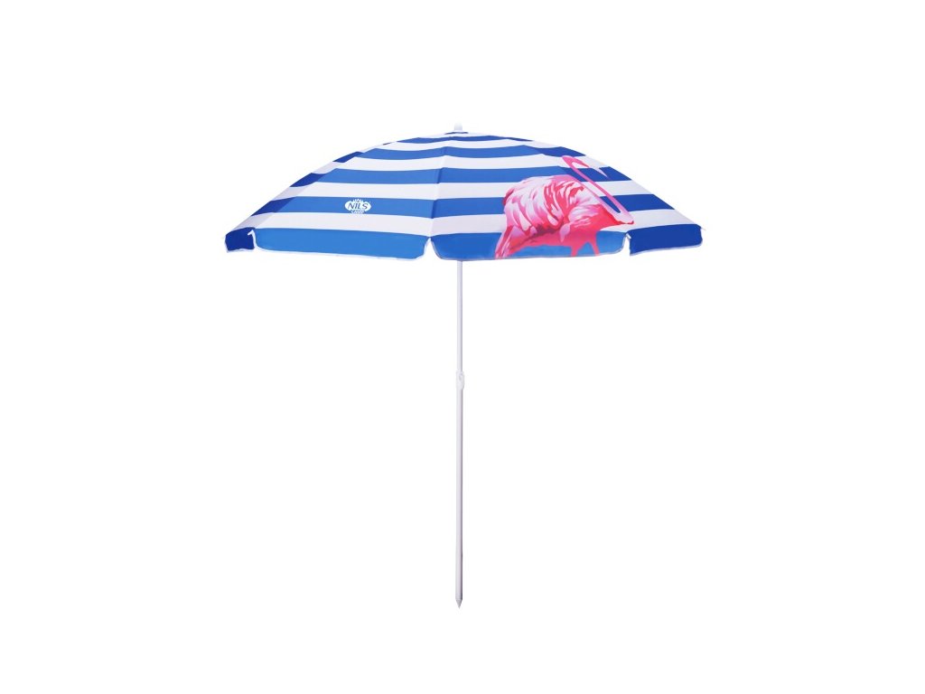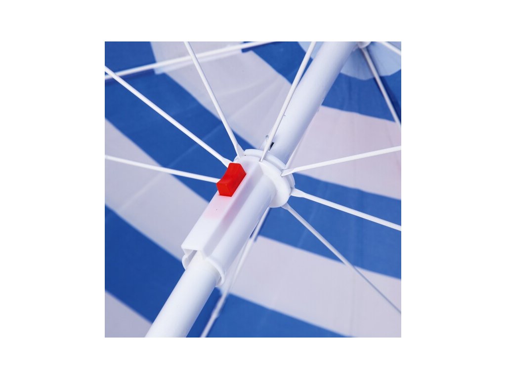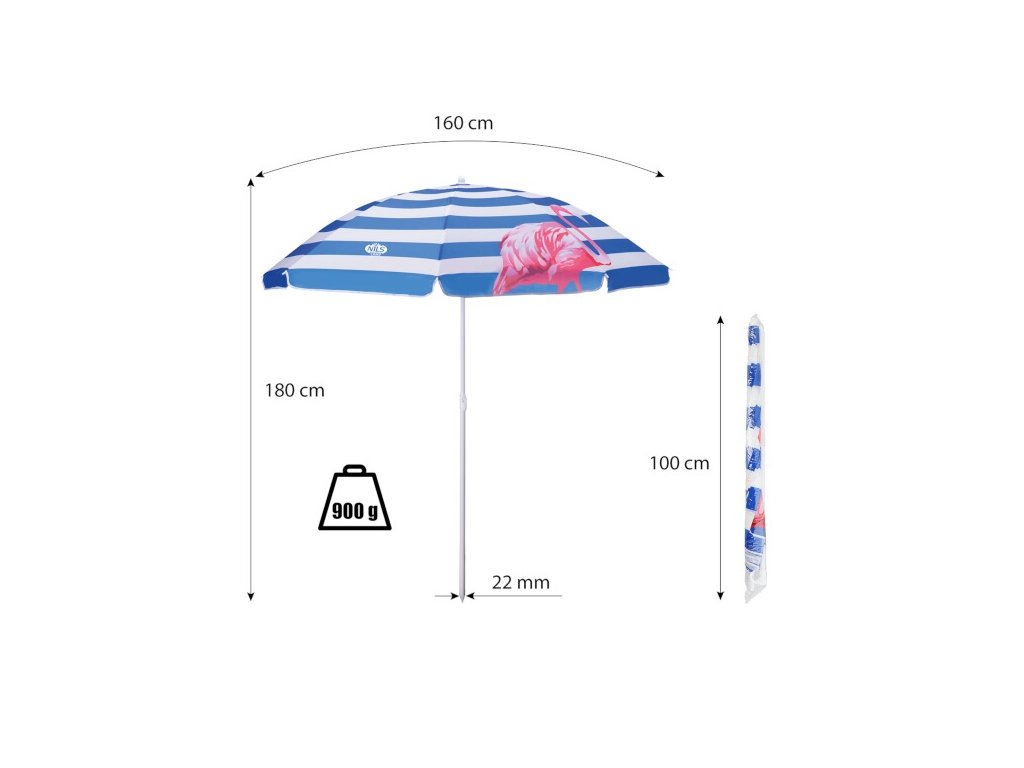 Slnečník sa ľahko prenáša vďaka dodávanému vaku s pútkom cez rameno. Spodná tyč je osadená špičkou pre ľahké zapichnutie do podkladu. Polyesterová plachta má priemer 160 centimetrov a dokonale chráni pred slnečným svitom a škodlivým UV žiarením. Rám je možné naklopiť.