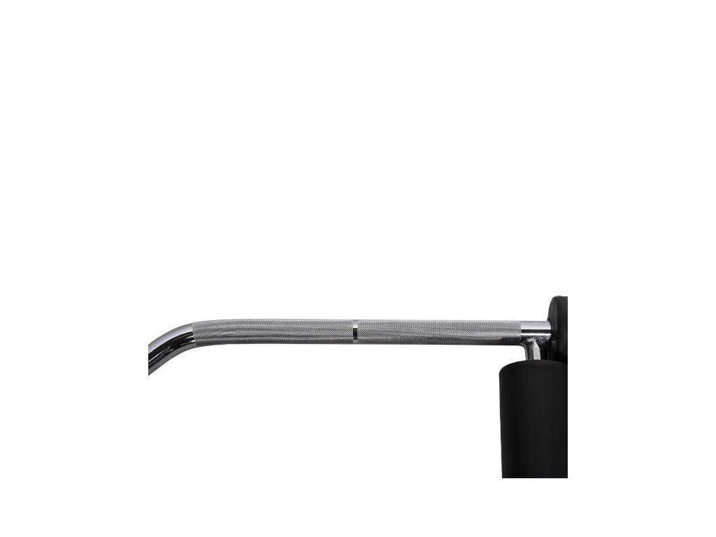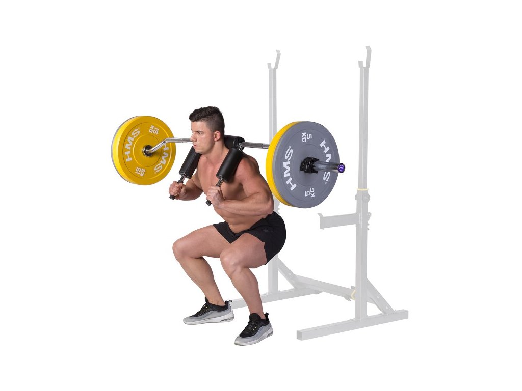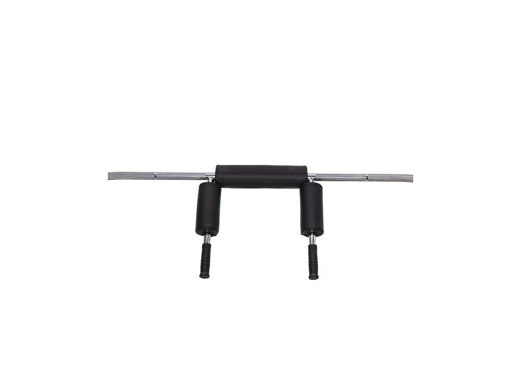 Pomocný úchop je opatrený plastovými madlami s protišmykovou úpravou. Stredná časť Squat Baru je vybavená pohodlnými, penovými valcami, ktoré pomáhajú znížiť tlak vyvíjaný na ramená a krk. Tréning je tak komfortnejší.