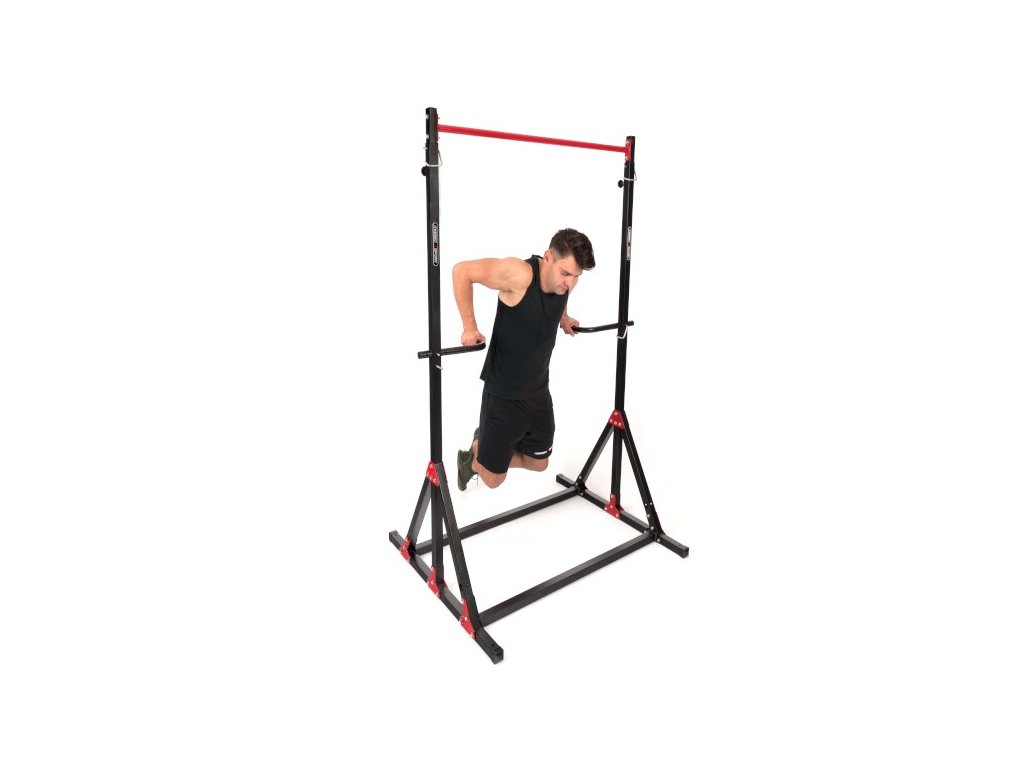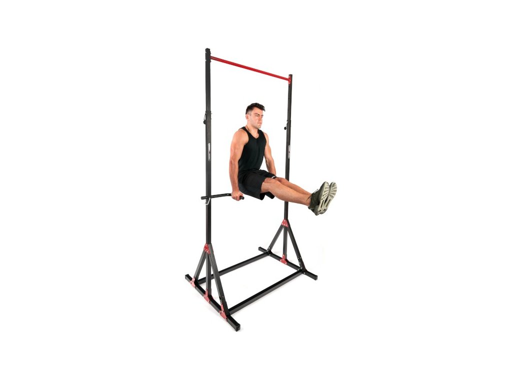 Stacionárna hrazda je ideálnou voľbou, ak nechcete zasahovať do interiéru, ale zároveň potrebujete stabilné zariadenie. S nastaviteľnými madlami na kliky a dipy môžete efektívne precvičiť rôzne svalové skupiny.
