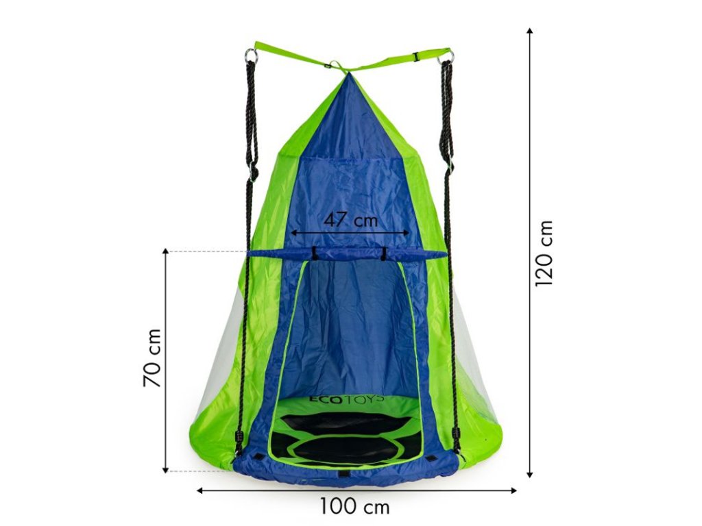 Stan je skvelým doplnkom pre Váš hojdací kruh. S ním deti zažijú ešte viac zábavy. Je vhodný pre hojdacie kruhy s priemerom 100 cm. Vďaka tomuto doplnku sa môžu deti ukryť dovnútra pričom stan obsahuje priehľadnú sieťku takže ich budete mať napriek tomu vždy na očiach.