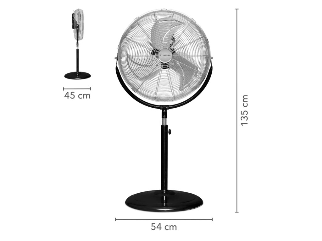 Stojanový ventilátor TVM 18 S je ideálnym riešením na efektívne ochladenie vzduchu počas horúcich letných dní – a to aj vo väčších miestnostiach či halách. Vďaka vysokému výkonu až 120 W a robustnej konštrukcii s lopatkami s priemerom približne 45 cm dokáže rýchlo a účinne rozhýbať stojatý vzduch a vytvoriť príjemnú klímu na pracovisku, doma aj v komerčných priestoroch.