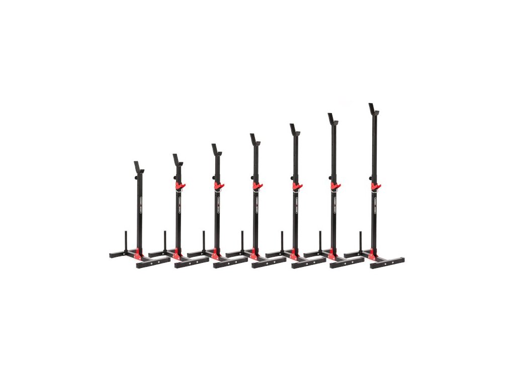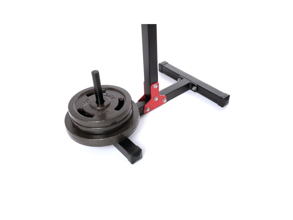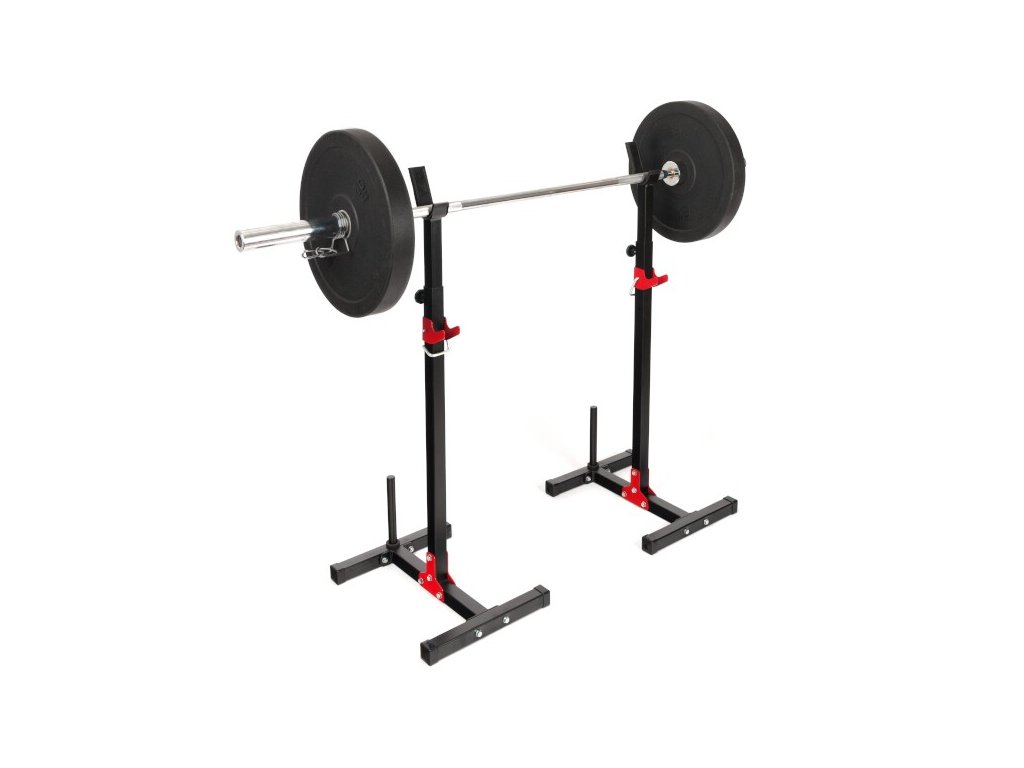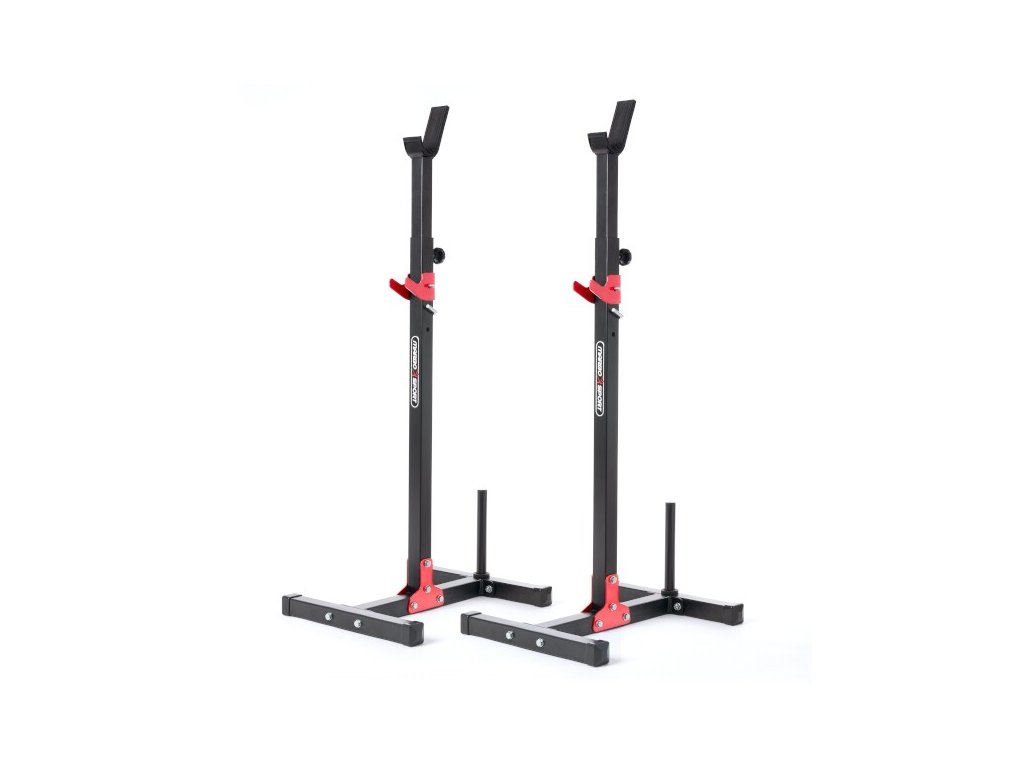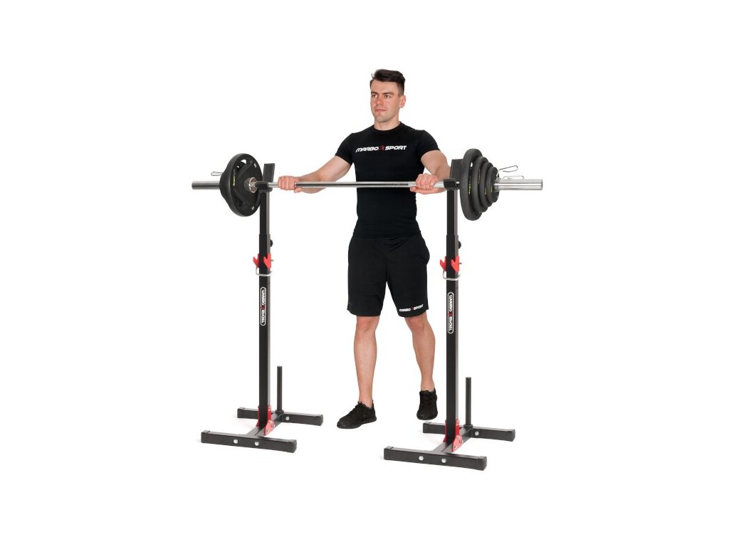 Stojany MARBO MH-S202 vyrobené v Poľsku s použitím oceľe najvyššej kvality, ktoré zabezpečujú bezpečnú nosnosť až do 250 kg. Sú ideálnou voľbou pre tých, ktorí hľadajú trvanlivé a cenovo dostupné stojany. Vďaka nastavenie výšky (v rozmedzí 87 - 145 cm) môžu byť použité samostatne alebo ako externé stojany počas cvičenia na lavici. Premyslená konštrukcia zaisťuje stabilitu a bezpečnosť pri tréningu. Komfort zaisťujú pogumované spodné konce pre lepšiu stabilitu. Stojany sú opatrené tŕňom pre odkladanie voľných závaží.