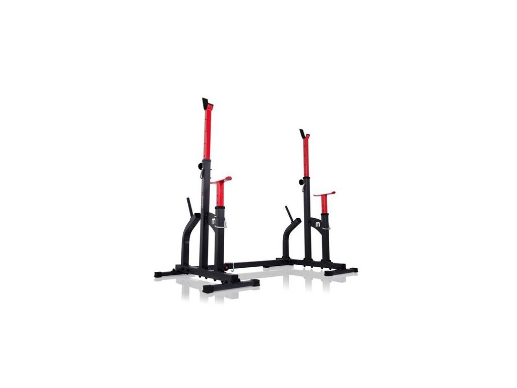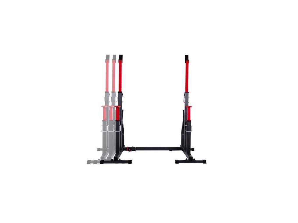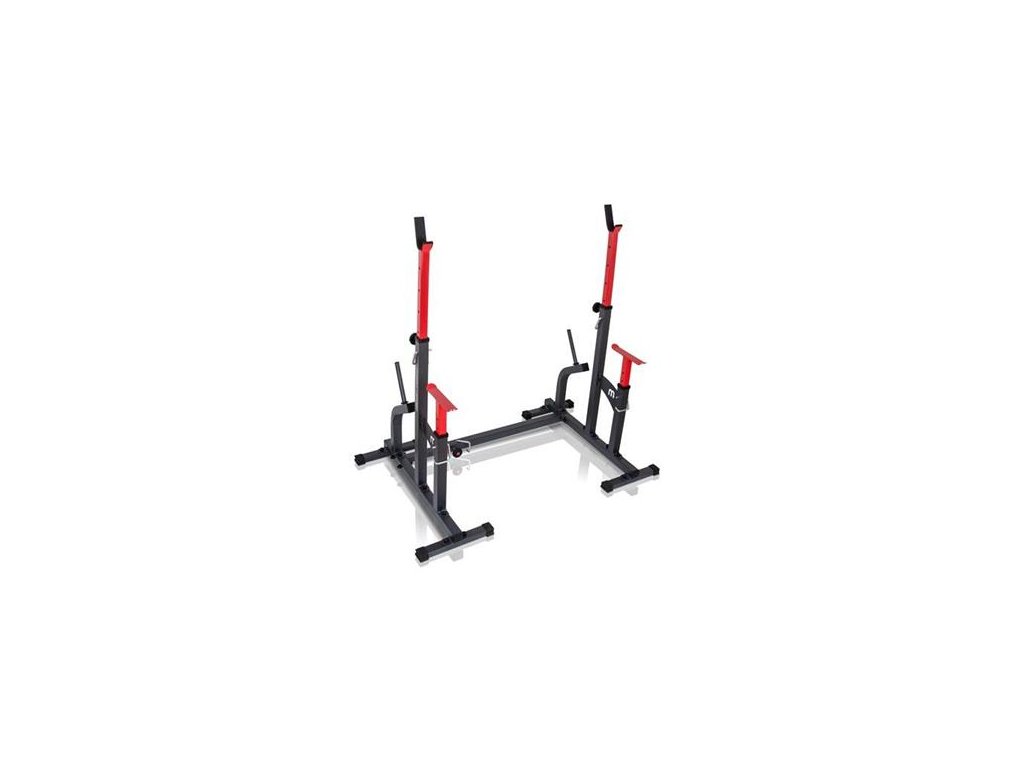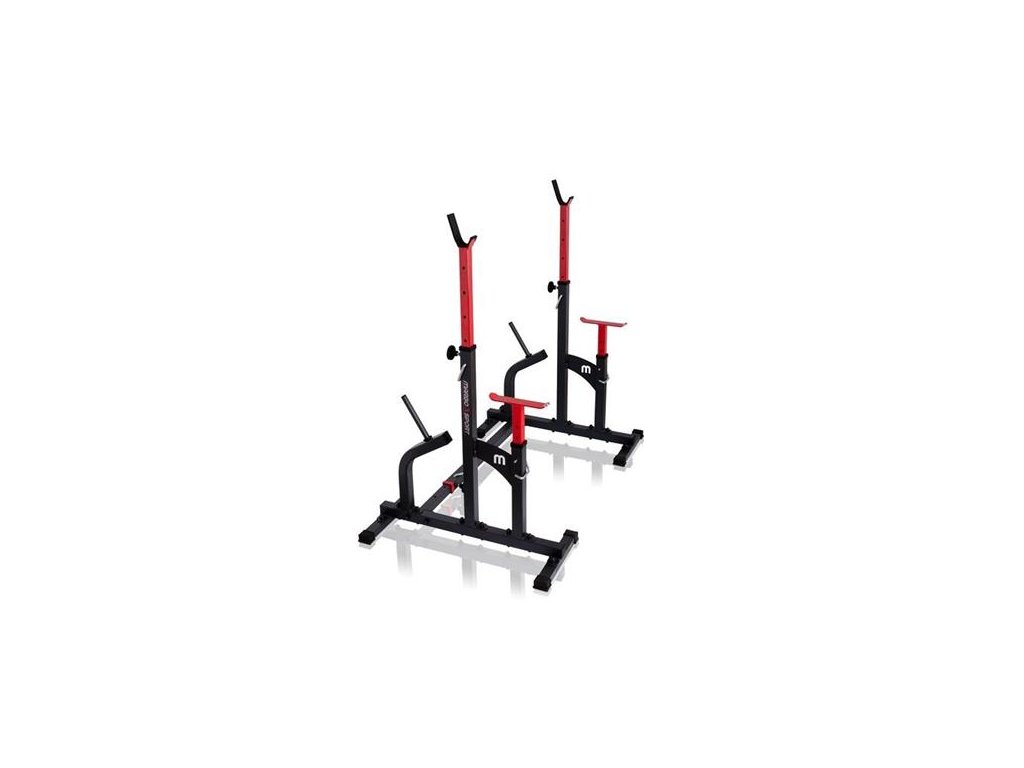 Stojany sú vyrobené z veľmi kvalitnej ocele. Profil konštrukcie je 50x50x2mm. Výšku možno nastaviť do 8 stupňov a istenie do 6 stupňov. Navyše vďaka troj stupňovej regulácii šírky tohto zariadenia, ideálne dopasujete dĺžku Vašej činky. Maximálna záťaž na stojan je 350kg.