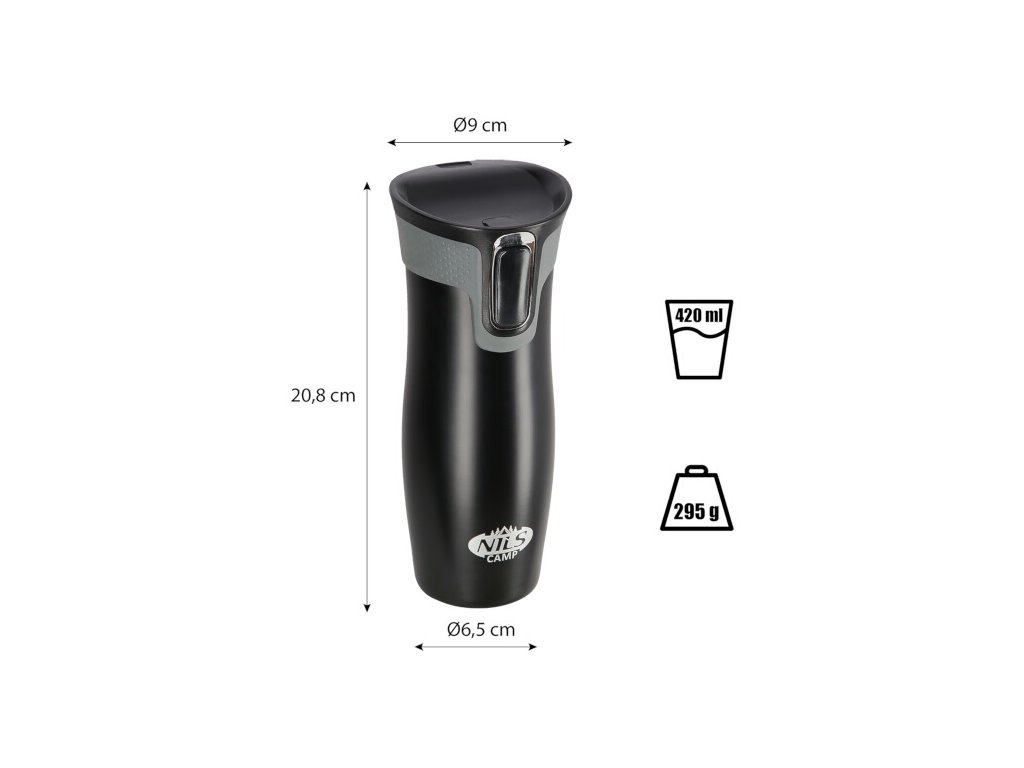 Termohrnček je vyrobený z dvojstennej nehrdzavejúcej ocele, ktorá zaručuje uchovanie horúcich nápojov po dobu 12 hodín a studených po dobu 24 hodín, takže nezáleží na tom, či si pripravíte rannú kávu na pitie cestou do práce, alebo si do hrnčeka nalejete obľúbenú limonádu a vezmete si ju so sebou na niekoľkohodinovú prechádzku do prírody, termohrnček udrží váš nápoj v správnej teplote. NCC03 má veľmi pohodlný systém otvárania. Keď sa chcete napiť, jednoducho stlačte tlačidlo na prednej strane veka a otvor pre prietok sa otvorí. Po uvoľnení tlačidla sa pohár zatvorí. Ďalšou veľkou výhodou je, že dno hrnčeka má protišmykovú gumu, ktorá zvyšuje bezpečnosť pred rozliatím horúcej kávy alebo čaju, keď je hrnček otvorený!