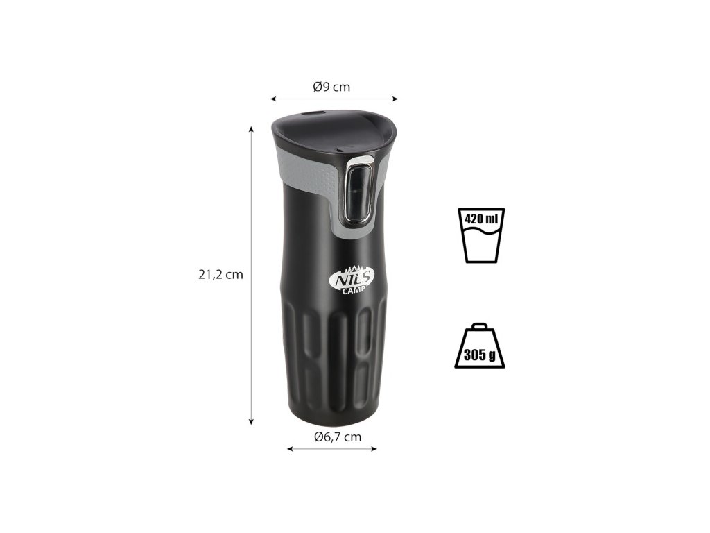 Termohrnček je vyrobený z dvojstennej nehrdzavejúcej ocele, ktorá zaručuje uchovanie horúcich nápojov po dobu 12 hodín a studených po dobu 24 hodín, takže nezáleží na tom, či si pripravíte rannú kávu na pitie cestou do práce alebo si do hrnčeka nalejete obľúbenú limonádu a vezmete si ju so sebou na niekoľkohodinovú prechádzku do prírody, termohrnček udrží váš nápoj v správnej teplote. NCC06 má veľmi pohodlný systém otvárania. Keď sa chcete napiť, jednoducho stlačte tlačidlo na prednej strane veka a otvor pre prietok sa otvorí. Po uvoľnení tlačidla sa pohár zatvorí. Ďalšou veľkou výhodou je, že dno hrnčeka má protišmykovú gumu, ktorá zvyšuje bezpečnosť pred rozliatím horúcej kávy alebo čaju, keď je hrnček otvorený!