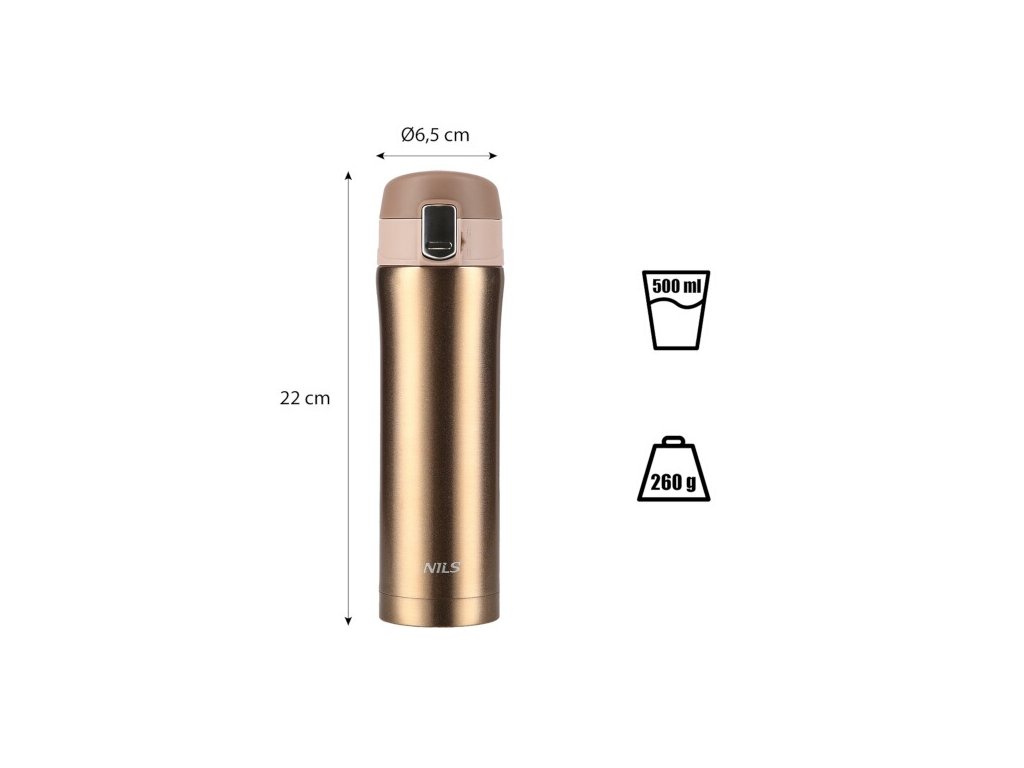 Termoska je vyrobená z dvojstennej nehrdzavejúcej ocele, ktorá zaručuje udržanie horúcich nápojov po dobu 12 hodín a studených nápojov po dobu 24 hodín, takže nezáleží na tom, či si pripravíte rannú kávu na pitie v kancelárii, alebo si do termosky nalejete svoju obľúbenú limonádu a vezmete si ju so sebou na niekoľkohodinovú prechádzku do prírody, termoska udrží váš nápoj v správnej teplote.
