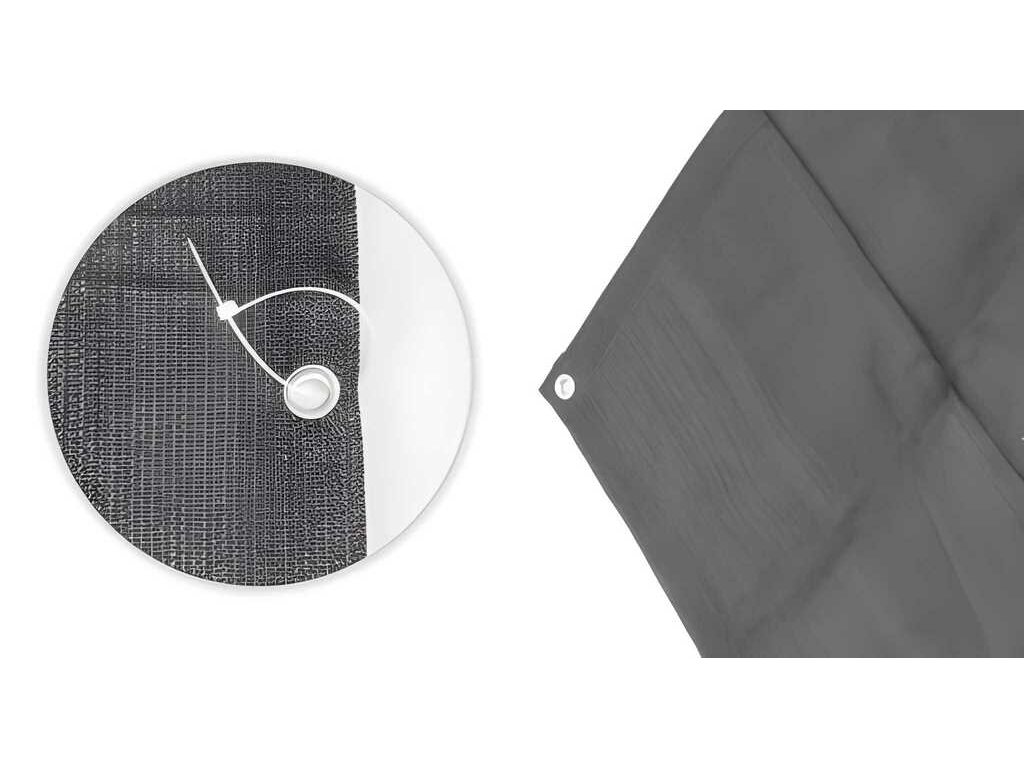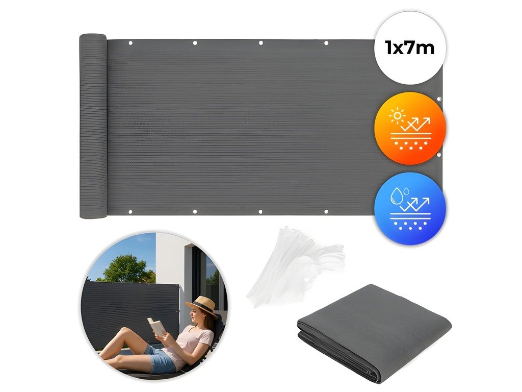 Balkónová zástena MultiGarden je praktickým riešením pre zabezpečenie súkromia a ochrany pred poveternostnými vplyvmi na vašom balkóne, terase alebo plote. Je vyrobená z odolného HDPE , je odolná voči poškodeniu a ľahko sa udržiava. Zosilnené okraje s hliníkovými očkami rozostupnými približne každých 30 cm umožňujú bezpečnú inštaláciu. Zástena je flexibilná, čo umožňuje jej prispôsobenie rôznym balkónovým konštrukciám. Sada obsahuje 34 káblových zväzkov a dve 10-metrové šnúry . Rozmery zásteny: 100x700 cm.