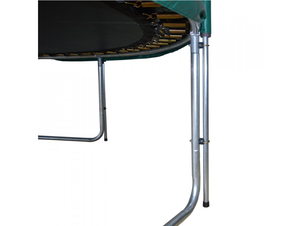 - pevnosť a stabilitu zabezpečuje 6 rámových trubiek, ktoré sú pripevnené ku konštrukcii trampolíny až k zemi