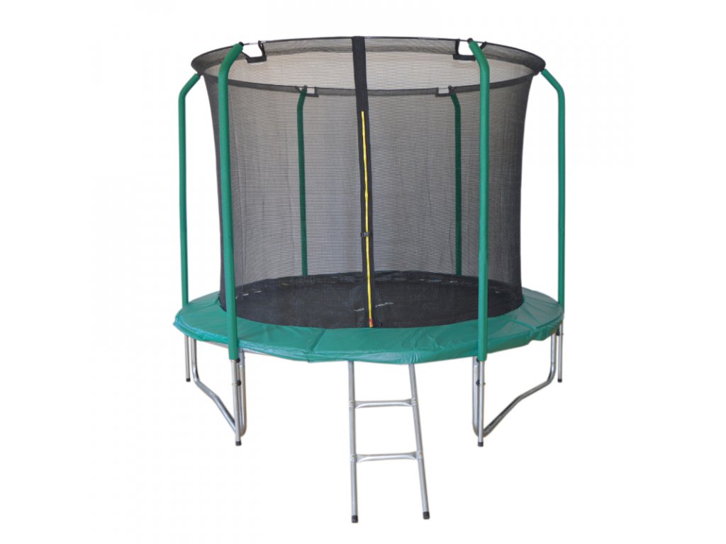 Trampolína SkyJump je ideálna pre tých, ktorí majú radi šport, v kombinácii so zábavou. Cvičenie na trampolíne zlepšuje fyzickú kondíciu a posilňuje organizmus. Vnútorná ochranná sieť, vrátane konštrukcie zaisťuje maximálnu stabilitu. Maximálna hmotnosť užívateľa je 100 kg. Nekorodujúce galvanizované pružiny, odolná konštrukcia rámu a aktívna plocha s vysokým odrazom sú vlastnosti, ktoré radia trampolínový set medzi špičkové výrobky.Trampolína je vhodná pre exteriérové využitie.