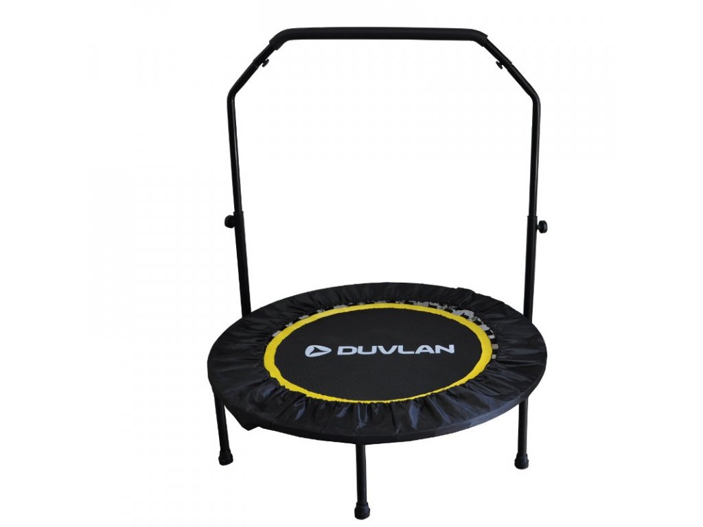 Trampolína s držadlom DUVLAN 102 cm pre Váš domáci tréning. Držadlo je výškovo nastaviteľné, takže je vhodná pre deti i dospelých. Držadlo je možné namontovať a zase demontovať. Trampolína je vhodná pre interiérové a exteriérové využitie.