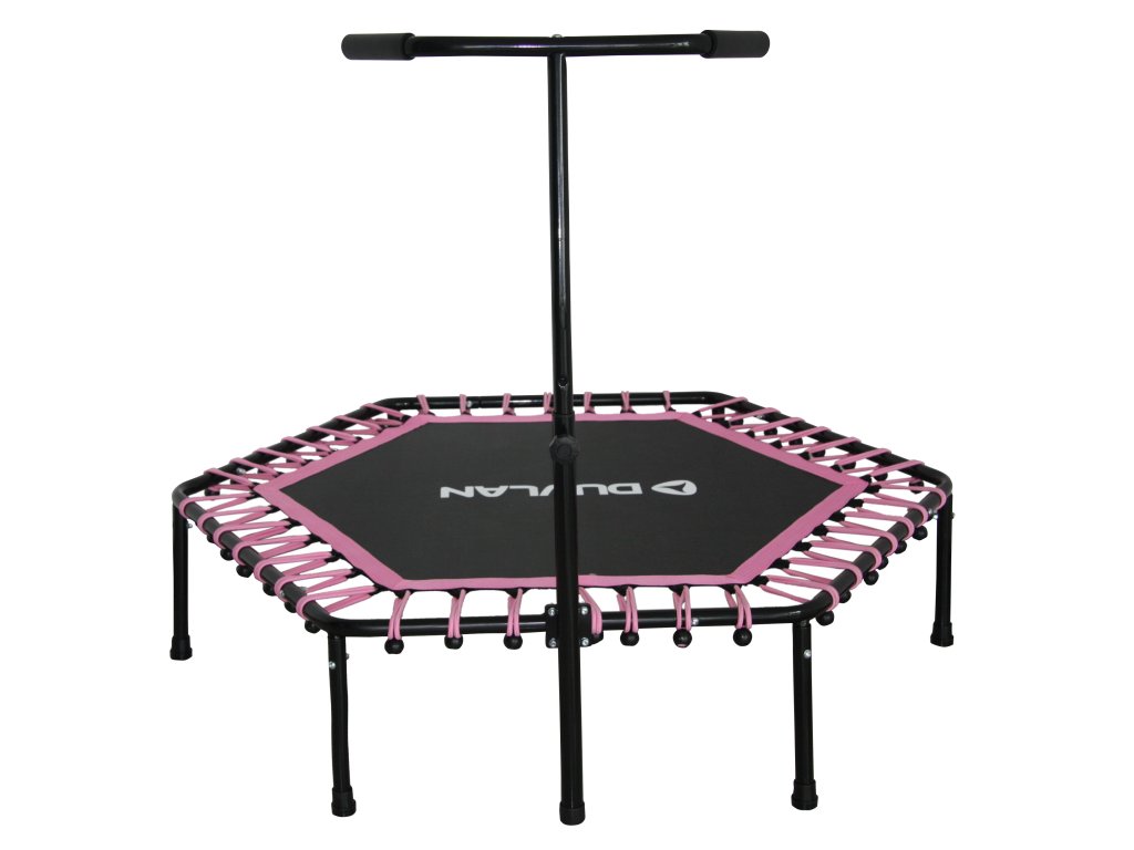 Trampolína s držadlom DUVLAN Jumpee Pink bola navrhnutá pre kondičné cvičenia dospelých, ale aj detí. Skákanie na trampolíne odbúrava stres a rozvíja Vaše pohybové schopnosti - motoriku. Vynikajúci relax a zábava pre všetky vekové kategórie. Masívna oceľová konštrukcia a odrazová plocha s vysokým odrazovým výkonom sú vyrobené z materiálov vysokej kvality. Držadlo je výškovo nastaviteľné. Trampolína je vhodná pre vnútorné i vonkajšie použitie.