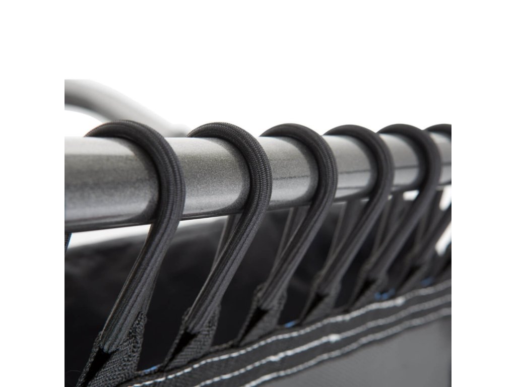 Elastické šnúry prvotriednej kvality ElastoPro ponúkajú super silnú a rovnomerne rozloženú pružnosť a zaistia vašu bezpečnosť počas tréningov. Trampolína HAMMER Fitness Cross Jump má dlhú životnosť zaistenú použitými materiálmi ako na elastické šnúry, tak aj vlastnú skákaciu plochu, ktoré navyše prešli záťažovými testami s viac ako 200 000 simulácií skokov. Nosnosť trampolíny je až 130 kg.