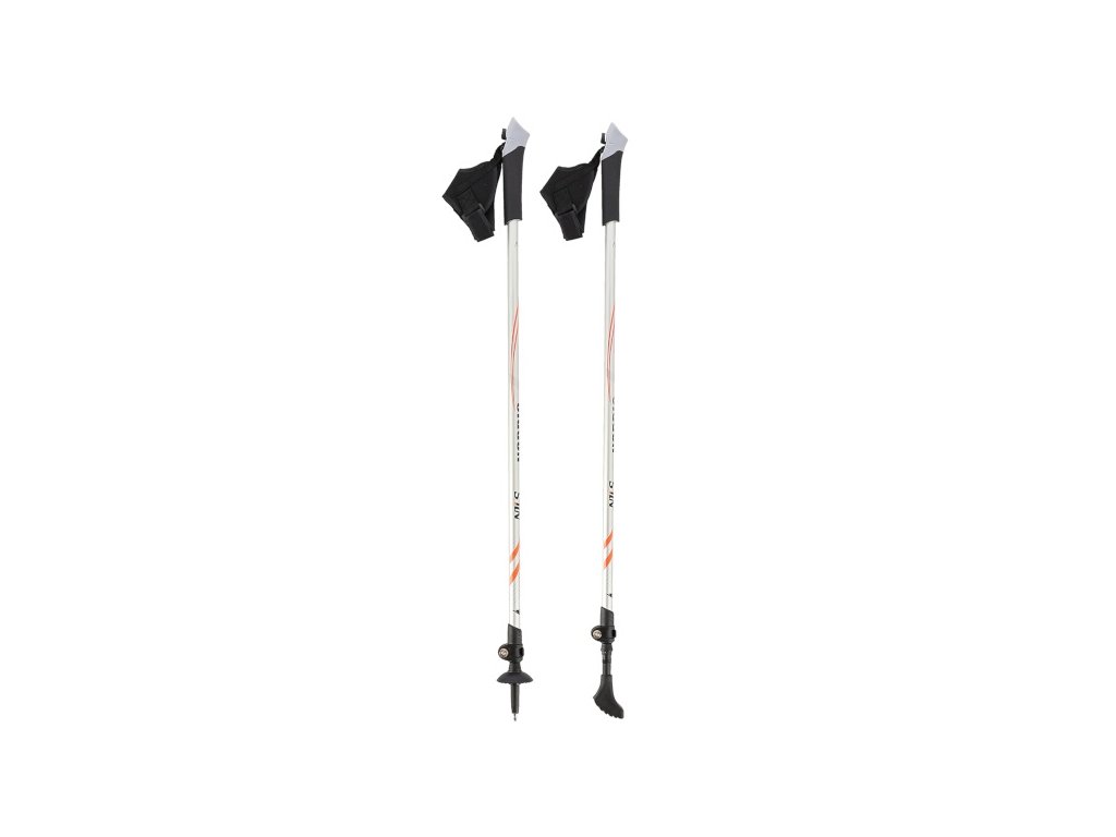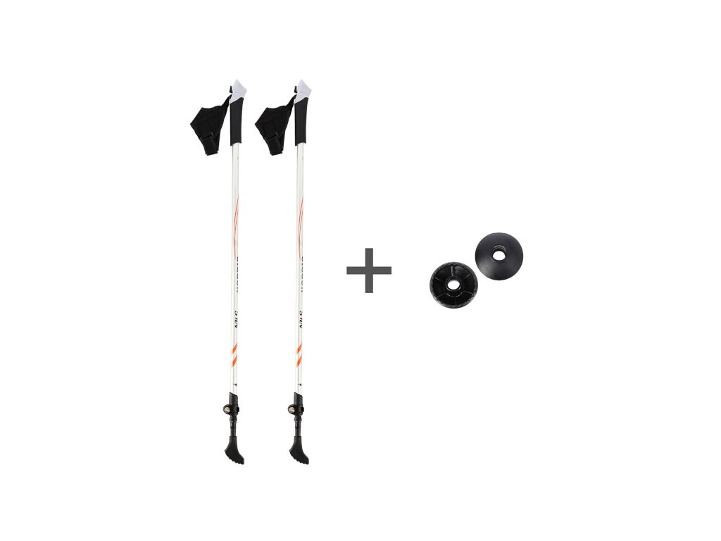 V balení: palice, dve gumové koncovky na pochod na asfalt a dva vymeniteľné tanieriky do mäkkého terénu