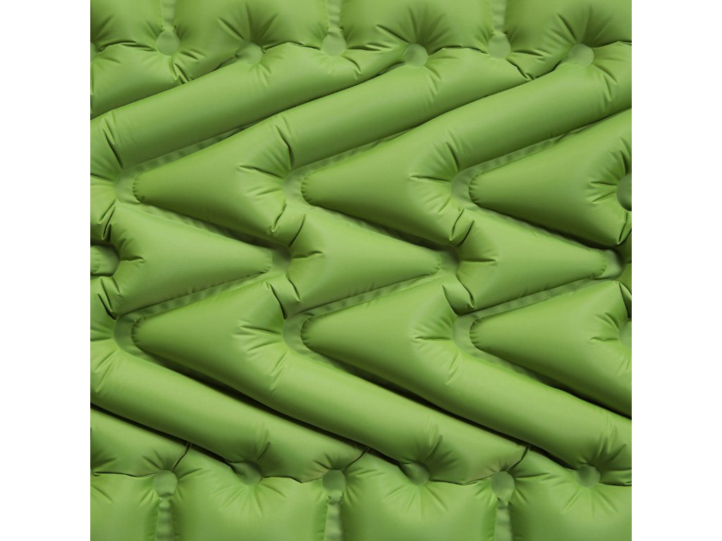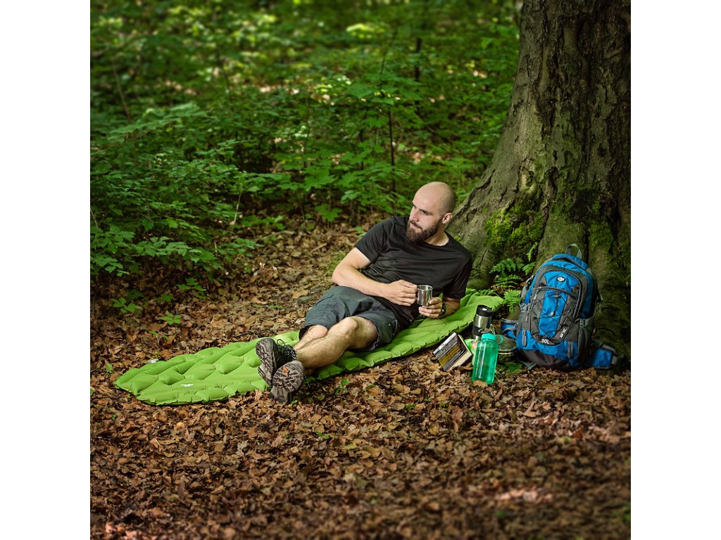 V zloženom stave zaberá podložka veľmi málo miesta a jej zloženie je veľmi jednoduché. Stačí odskrutkovať ventil a zrolovať podložku od horného okraja. Nemusíte sa obávať, že sa sama rozbalí, pretože má popruh, ktorý rohož po zrolovaní zaistí. Súprava obsahuje aj praktické puzdro, do ktorého môžeme matrac zabaliť. Uľahčí vám prepravu a zároveň chráni podložku pred poškodením. Vďaka jeho veľkosti a hmotnosti len 0,6 kg ho môžete ľahko nosiť so sebou na každú cestu.