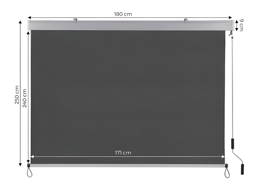 Táto vertikálna markíza je perfektným riešením pre balkóny, terasy a altánky. Je vyrobená z odolného materiálu, poskytuje ochranu pred slnkom a vetrom a zároveň zachováva súkromie. Mechanizmus automatického navíjania umožňuje rýchle a jednoduché otváranie a zatváranie, čím zvyšuje pohodlie, zatiaľ čo ďalšie spodné úchyty na stenu zaisťujú stabilitu aj pri silných nárazoch vetra. Vodotesná a UV odolná tkanina (180 g/m² polyester) zaručuje odolnosť výrobku, zatiaľ čo práškovo lakovaný kovový rám zaisťuje pevnú konštrukciu.