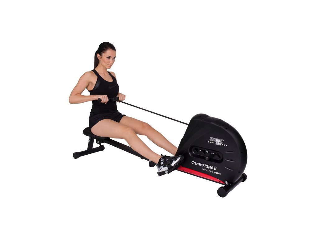 Veslársky trenažér Cambridge II zaručuje tréning celého tela. Pohodlné cvičenie zabezpečia 4 možnosti odporu a čalúnené pohodlné sedadlo s kolieskami a guľovými ložiskami pre ľahký posuv po ráme sedadla. Počítač s digitálnym displejom má kontrolu nad časom, príťahmi a spálenými kalóriami. Stabilná poloha chodidla je zabezpečená zarážkami so suchým zipsom.