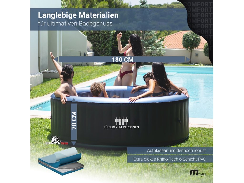 Vďaka 6-vrstvovému PVC Rhino-Tech je materiál až o 25 % hrubší ako štandardné nafukovacie vírivky