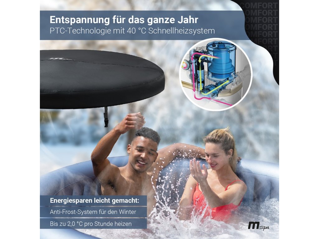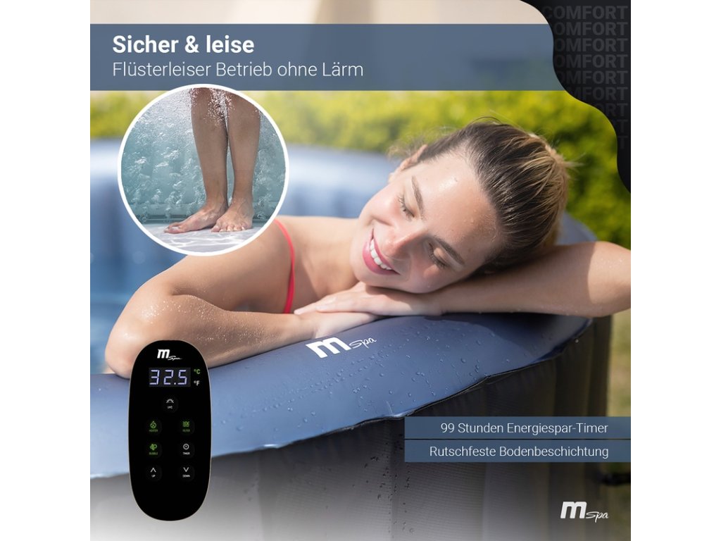 Revolučný dizajn s najmodernejšími funkciami a vlastnosťami sú stredobodom pozornosti novej nafukovacej vírivky MSpa Bergen. Pre zníženie údržby a zvýšenie pohodlia sú vybrané materiály najvyššej kvality . Nafukovacia vírivka poskytuje jedinečné chvíle, najmä v chladnom období. Preto je tento model vybavený unikátnym systémom proti zamrznutiu. Vďaka tomu je táto vírivka vhodná na vonkajšie použitie, takže si môžete oddýchnuť v horúcej vode po celý rok! Funkcia časovača vám umožňuje naplánovať si kúpanie až na 99 hodín vopred. Nafukovacia vírivka rýchlo ohrieva vodu až o 2 °C za hodinu. Najnovšou technológiou vo vírivkách je čistenie pomocou UV-C dezinfekčného systému, ktorý eliminuje vírusy a mikroorganizmy v sterilizačnej komore. UV-C svetlo je zabudované v riadiacej jednotke a je neškodné pre pokožku a oči. S MSpa Bergen zažijete jedinečný wellness zážitok!