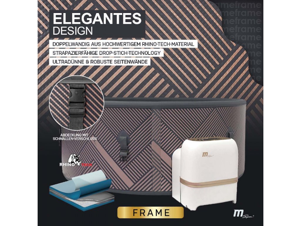 Miweba MSpa Whirlpool Mono je veľmi robustná a napriek tomu ľahká vďaka extra hrubému Rhino-Tech 6-vrstvovému materiálu a inovatívnemu procesu drop-stitch. V procese drop-stitch sú vrstvy materiálu navzájom bezpečne a pevne spojené pomocou mnohých polyesterových nití. Materiál Rhino-Tech tejto inovatívnej a dvojstennej vírivky do záhrady umožňuje ultratenké bočné steny s vysokou stabilitou. Materiál však dokáže ešte viac. Je veľmi šetrný k pokožke, chráni vonkajšiu vírivku pred UV svetlom a mrazom a má aj atraktívny dizajn.