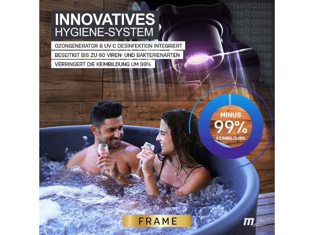 Miweba MSpa Whirlpool Mono ponúka optimálnu ochranu proti choroboplodným zárodkom prostredníctvom dvoch dobre zladených technológií. UV -C systém je aktívny priamo počas kúpania a počas procesu filtrovania odstraňuje z vody veľa baktérií. Na druhej strane môžete pred kúpaním alebo po kúpaní zapnúť generátor ozónu, aby ste uvoľnili vodu a bazén od rias a baktérií. Kombinácia oboch technológií úspešne bojuje až so 60 druhmi baktérií. Spolu s antibakteriálnym vnútorným obložením vám vírivka ponúka najvyššiu úroveň hygieny a znižuje tak množstvo potrebných čistiacich prostriedkov.