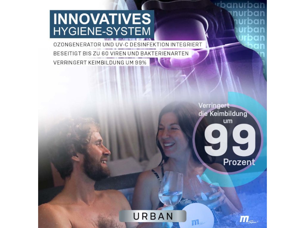 Vďaka kombinácii generátora ozónu a UV-C svetla má Miweba MSpa Whirlpool Aurora inteligentný hygienický systém, v ktorom sa dve technológie dokonale dopĺňajú. UV-C systém eliminuje množstvo baktérií vo vode, ktorá preteká cez filter. Účinkuje pred, po a počas kúpania. Generátor ozónu na druhej strane odstraňuje riasy a baktérie z celej vírivky. Môžete ho použiť vždy, keď v bazéne nikto nie je. Kombinovaná technológia eliminuje až 60 druhov baktérií a znižuje množstvo potrebného čistiaceho prostriedku na minimum.
