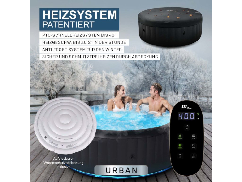Vírivka je nafukovacia. Na nafúknutie stačí stlačiť dve tlačidlá. Všetko ostatné sa postará samo. Vírivka vďaka svojmu 360° bublinkovému systému s tromi stupňami intenzity zaručuje maximálnu zábavu z kúpania až pre šesť osôb; a nielen v lete. So systémom rýchleho ohrevu PTC môžete rýchlo ohriať vodu aj v chladných dňoch. Kombinovaná technológia generátora ozónu a UV-C svetla spolu s antibakteriálnou vnútornou výstelkou zaisťuje maximálnu hygienu.