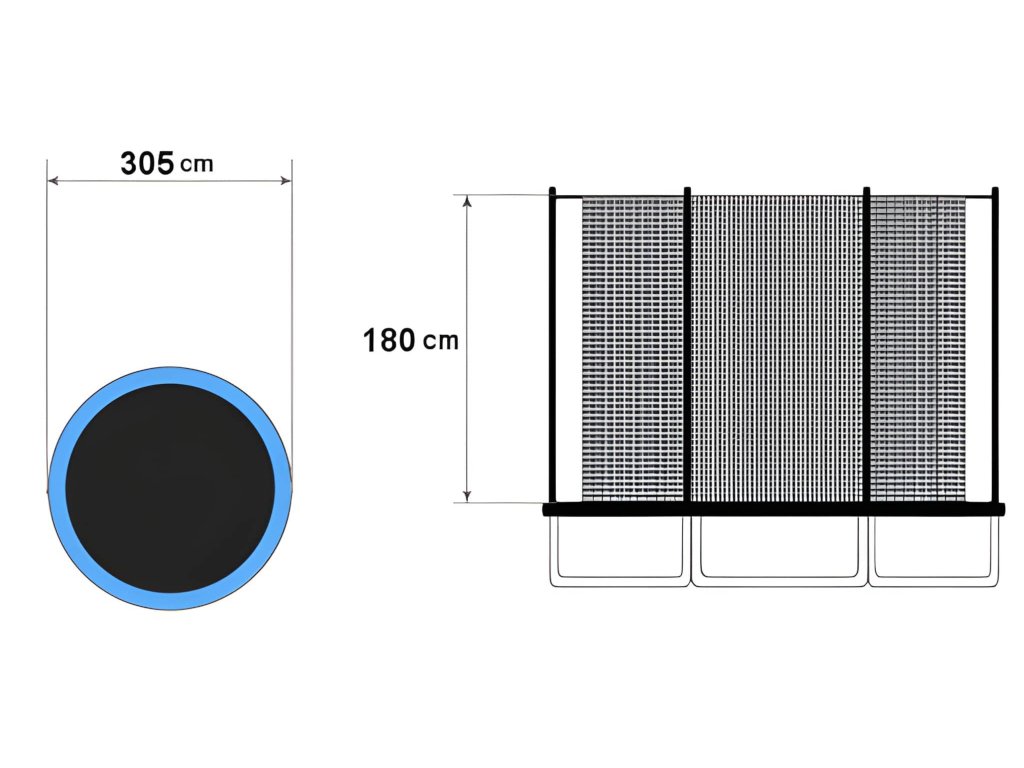 Sieť je vyrobená z odolných materiálov s hustou a pevnou väzbou. Je odolná voči všetkým vonkajším poveternostným podmienkam. Je vhodná pre trampolíny všetkých výrobcov s priemerom 305 až 312 cm a 8 stĺpikmi (10FT8) s vnútornou ochrannou sieťou. Sieť je vybavená obojsmerným zipsom a bezpečnostnými prackami.