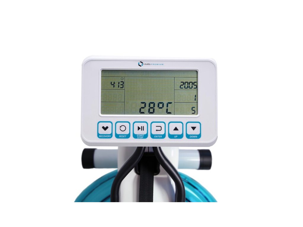 "Veslár" je tiež vybavený počítačom, ktorý zobrazuje všetky dôležité dáta počas tréningu. Naviac je súčasťou balenia tiež hrudný pás pre presné meranie tepu.