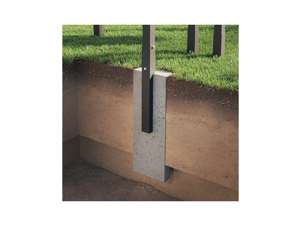 Pre dosiahnutie najlepších výsledkov odporúčame stĺpy konštrukcie zapustiť do zeme v hĺbke minimálne 37 cm a následne zabetónovať - minimálne rozmery základu sú 25x25x60 cm.