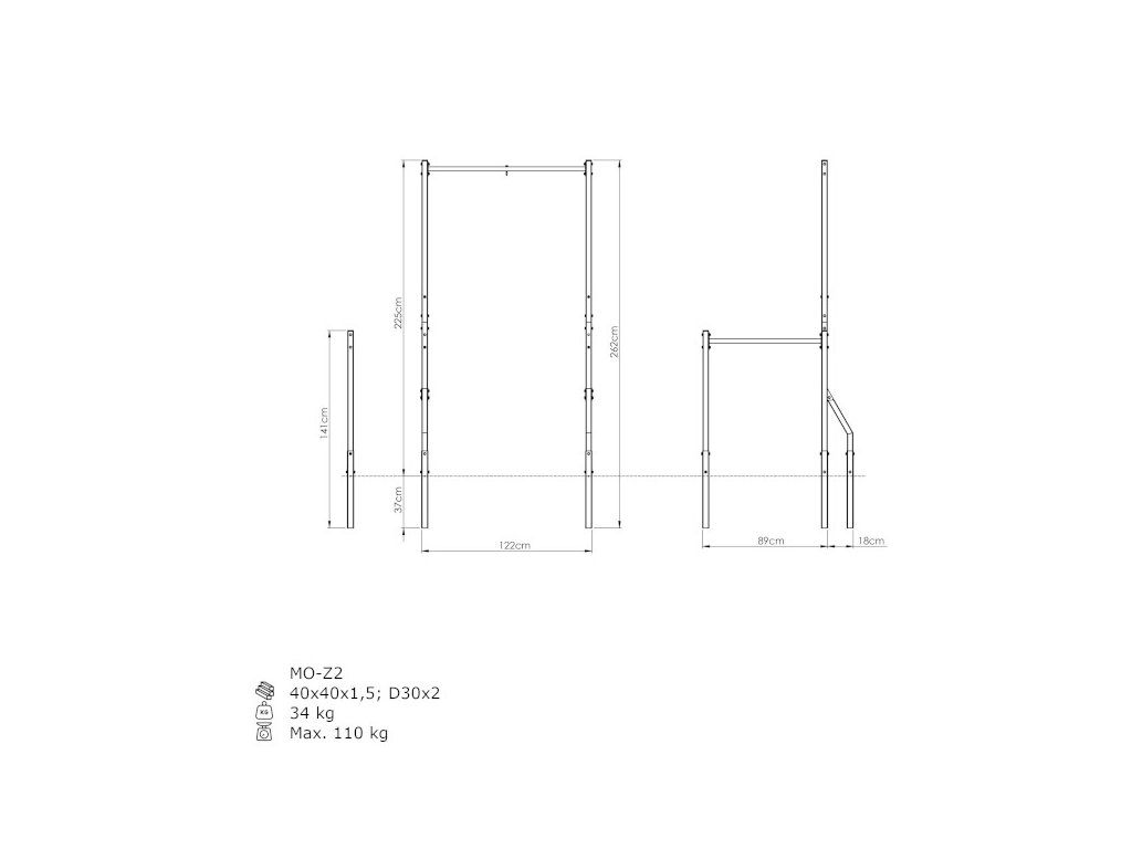 - profil: 40x40x1,5 mm, D30x2 mm