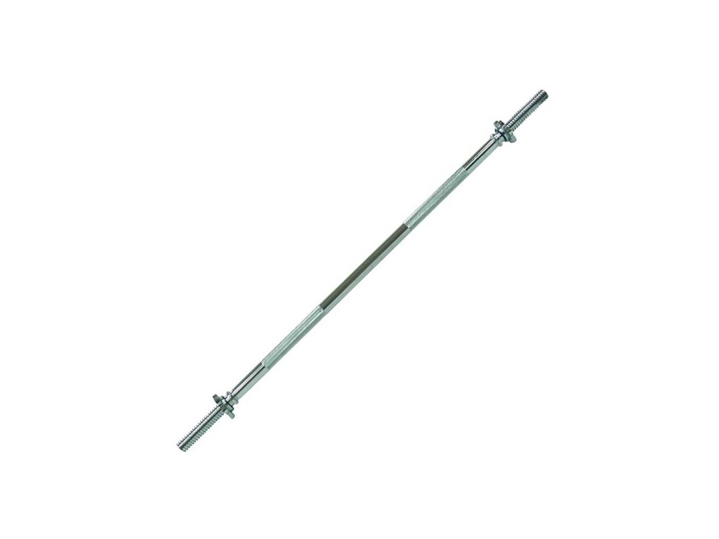 Rovná hriadeľ -120cm, matice v tvare hviezdy. Pre zaistenie pohodlného a bezpečného uchopenia, je rukoväť hriadeľa vrúbkovaná. Sada obsahuje dve skrutkové matice. Matica tohto typu zaručuje pri cvičení stabilnú polohu. Matice majú vo vnútri gumové tesnenie, aby sa zabránilo uvoľneniu zaťaženia.