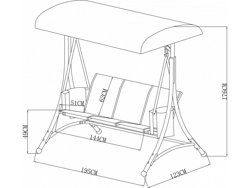 Rozmery hojdačky sú 195 x 123 x 176 cm (ŠxHxV), čo z nej robí ideálny doplnok do každej záhrady. Sedacia časť má rozmery 144 x 51 cm (ŠxH) a výška operadla je 62 cm. Hmotnosť hojdačky je 33 kg a jej maximálna nosnosť je až 300 kg.