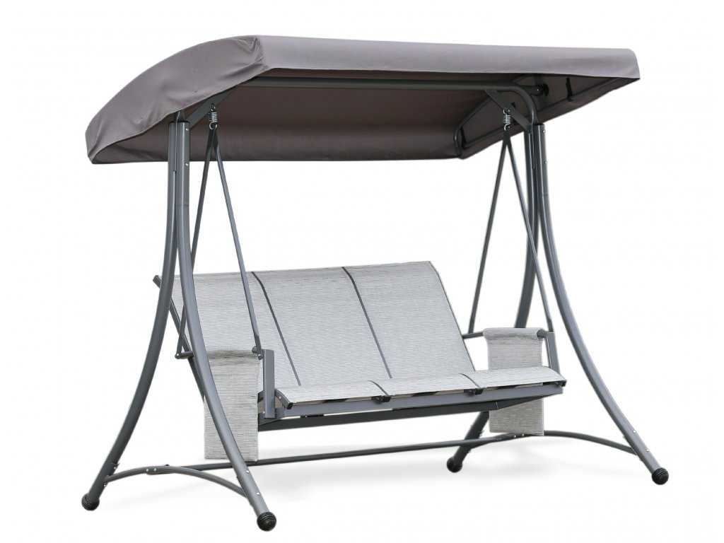 Konštrukcia hojdačky je pevná a bezpečná. Sedák a operadlo sú vyrobené z priedušného materiálu Textilene, ktorý zaručuje maximálny komfort aj počas horúcich letných dní.