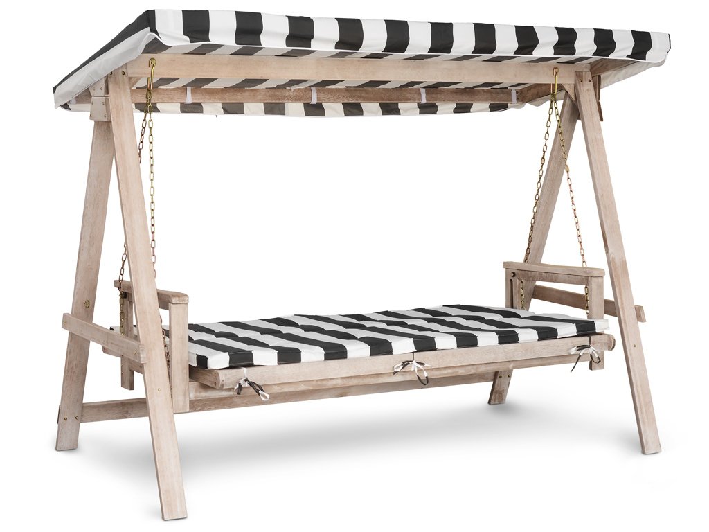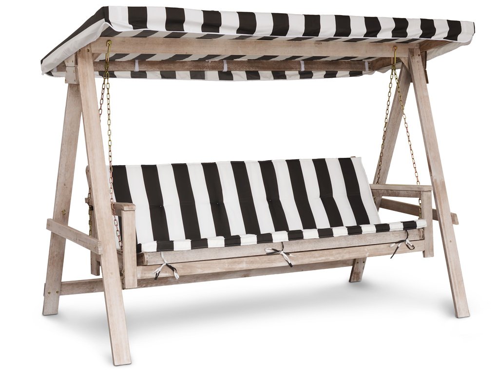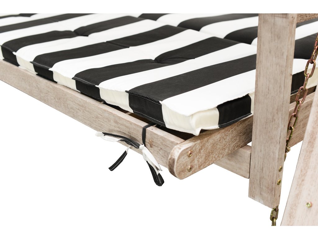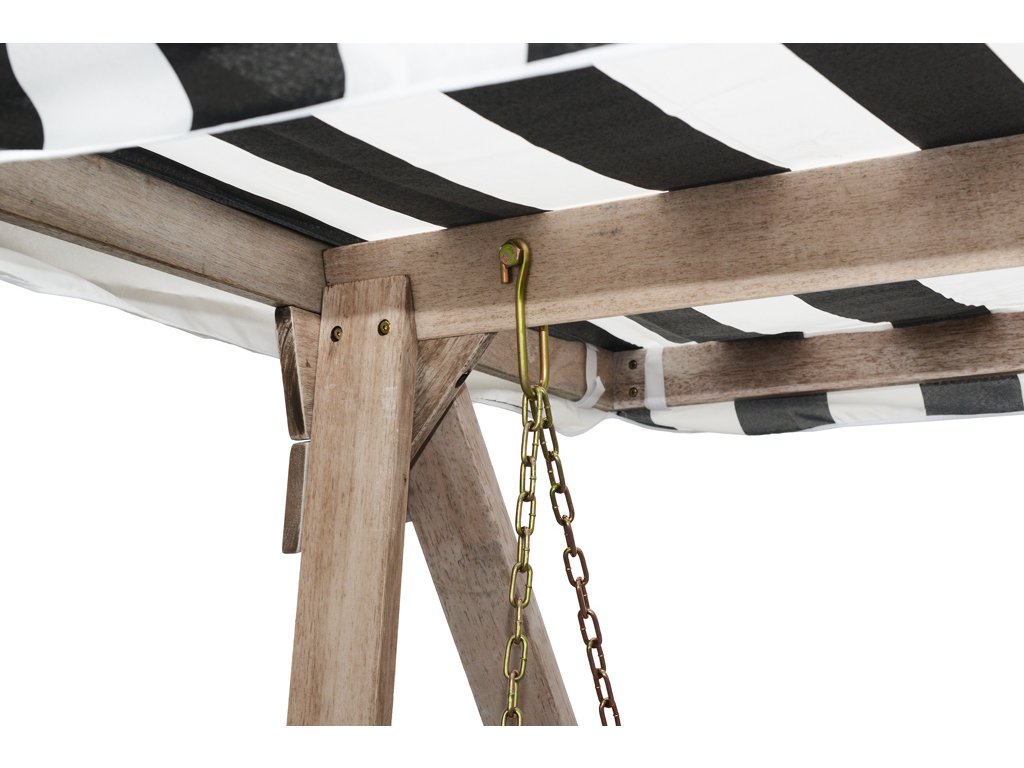 Konštrukcia hojdačky je vyrobená z kvalitného tvrdého dreva shorea. O pohodlné sedenie sa stará mäkké polstrovanie a pred slnkom a dažďom vás ochráni vodeodolná strieška.