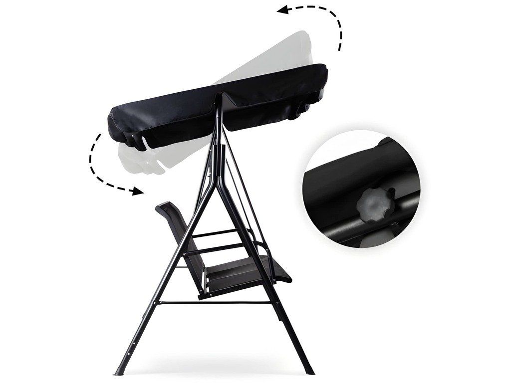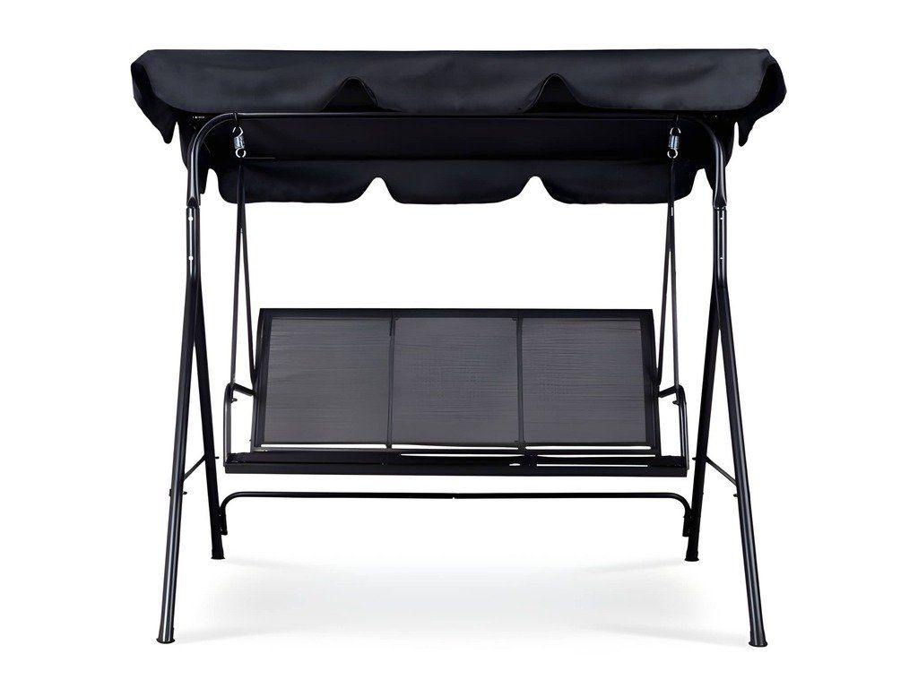 Táto záhradná hojdačka je určená do záhrady, na terasu, balkón alebo záhradku a poskytuje pohodlné miesto na oddych pre tri osoby . Jej konštrukcia je založená na odolnom oceľovom ráme , ktorý zaisťuje stabilitu a odolnosť pri každodennom používaní vonku. Sedadlo je vyrobené z priedušnej textilnej sieťoviny , ktorá podporuje cirkuláciu vzduchu a po daždi rýchlo schne. Pružiny zaisťujú plynulé a rovnomerné hojdanie, čím zvyšujú pohodlie. Nastaviteľná strieška s volánikom umožňuje prispôsobiteľnú ochranu pred slnkom alebo slabým dažďom. Protišmykové opierky na nohy zvyšujú stabilitu a chránia podlahu. Maximálna nosnosť je 260 kg.