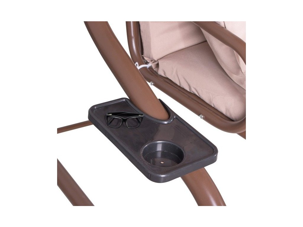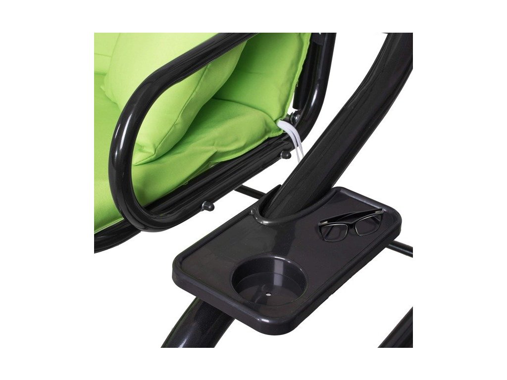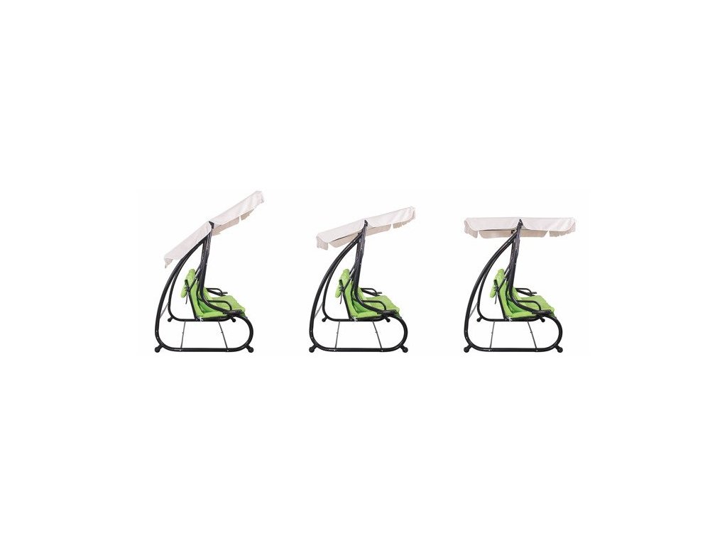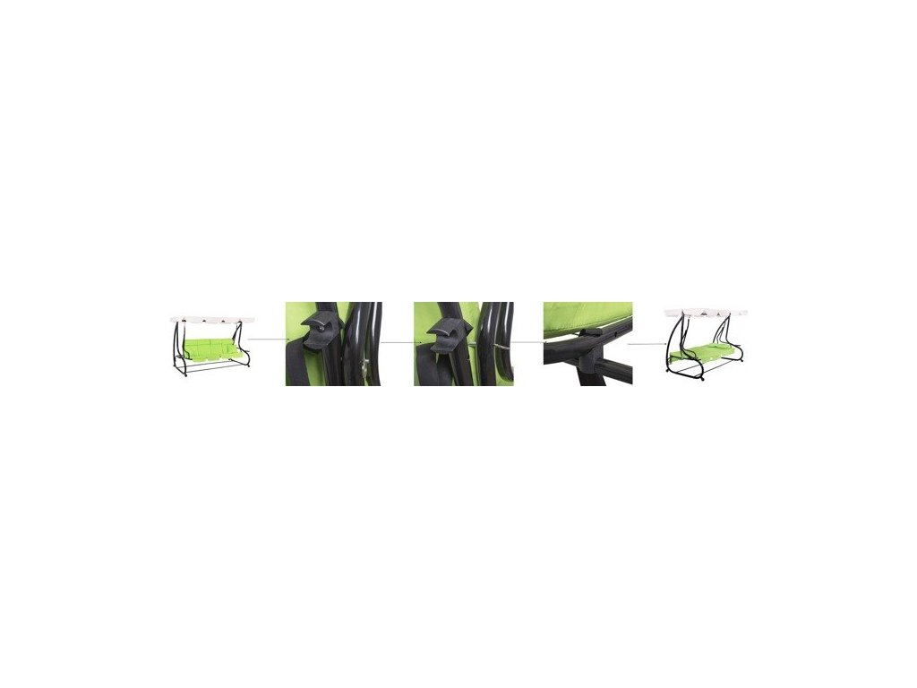 Záhradná hojdačka umožňuje maximálny odpočinok počas letných dní a večerov. Polstrovanie umiestnené na sedadle a na chrbte poskytuje pohodlie a možnosť relaxovať s priateľmi na čerstvom vzduchu. Nastaviteľná strieška umožňuje nastaviť polohu tak, aby boli osoby v tieni. Pohovku je možné rozložiť do ležiacej polohy a vychutnať si tak oddych v prírode. Bezpečnostný zámok zabraňuje rozloženiu pohovky.