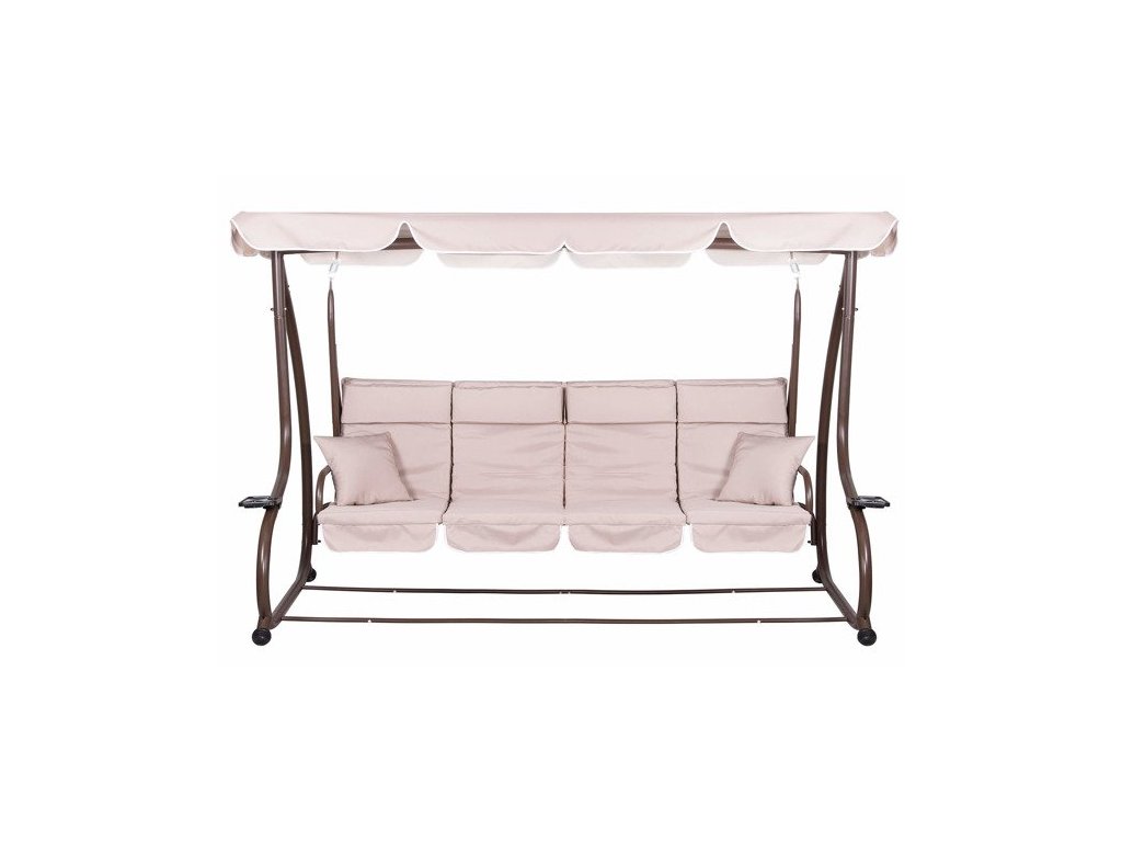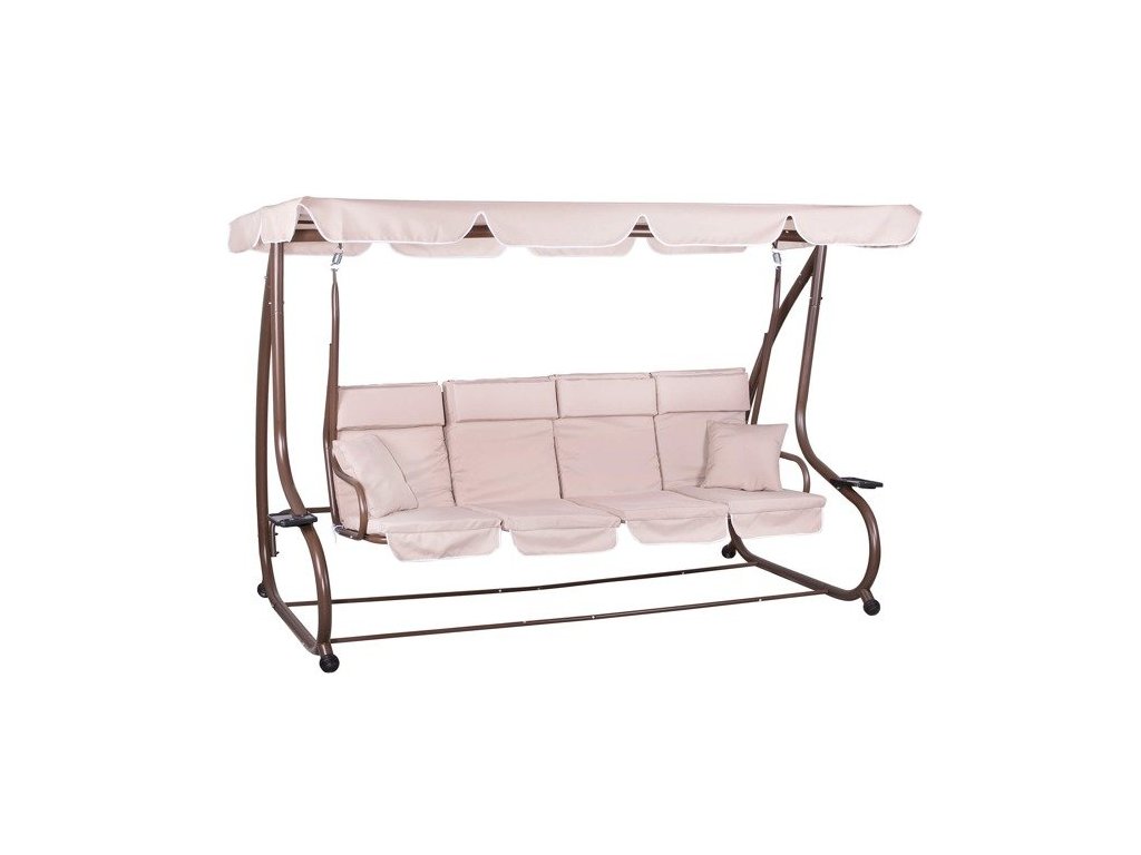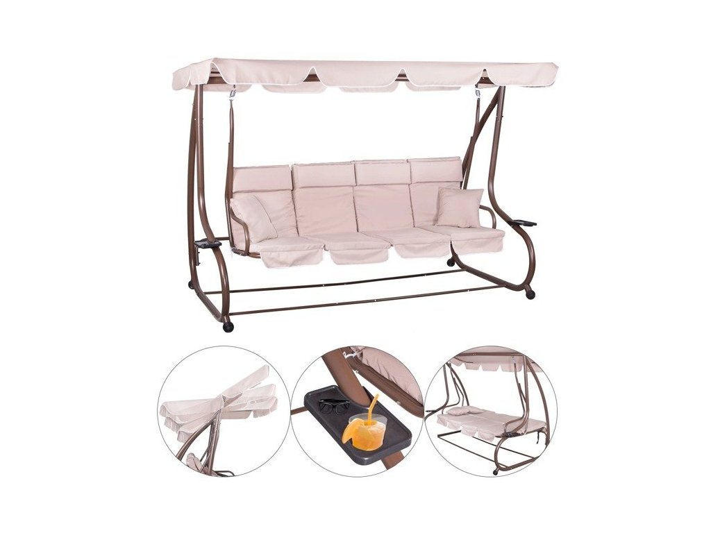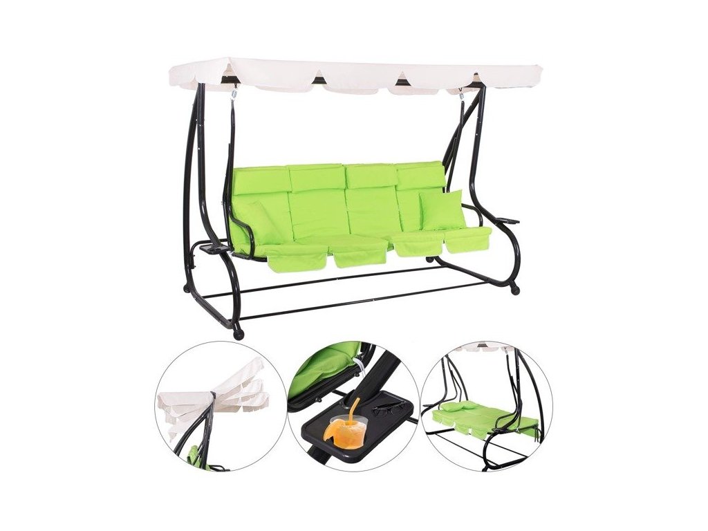 Záhradná hojdačka umožňuje maximálny odpočinok počas letných dní a večerov. Polstrovanie umiestnené na sedadle a na chrbte poskytuje pohodlie a možnosť relaxovať s priateľmi na čerstvom vzduchu. Nastaviteľná strieška umožňuje nastaviť polohu tak, aby boli osoby v tieni. Pohovku je možné rozložiť do ležiacej polohy a vychutnať si tak oddych v prírode. Bezpečnostný zámok zabraňuje rozloženiu pohovky.