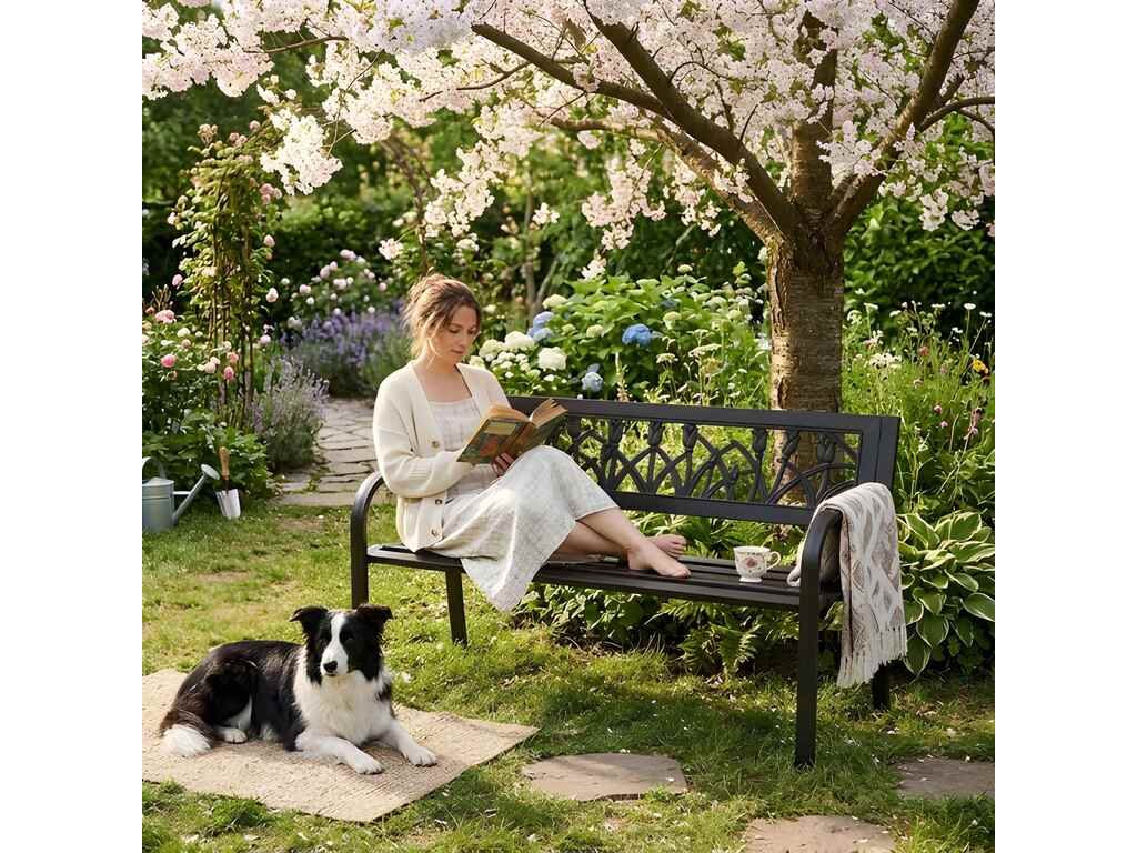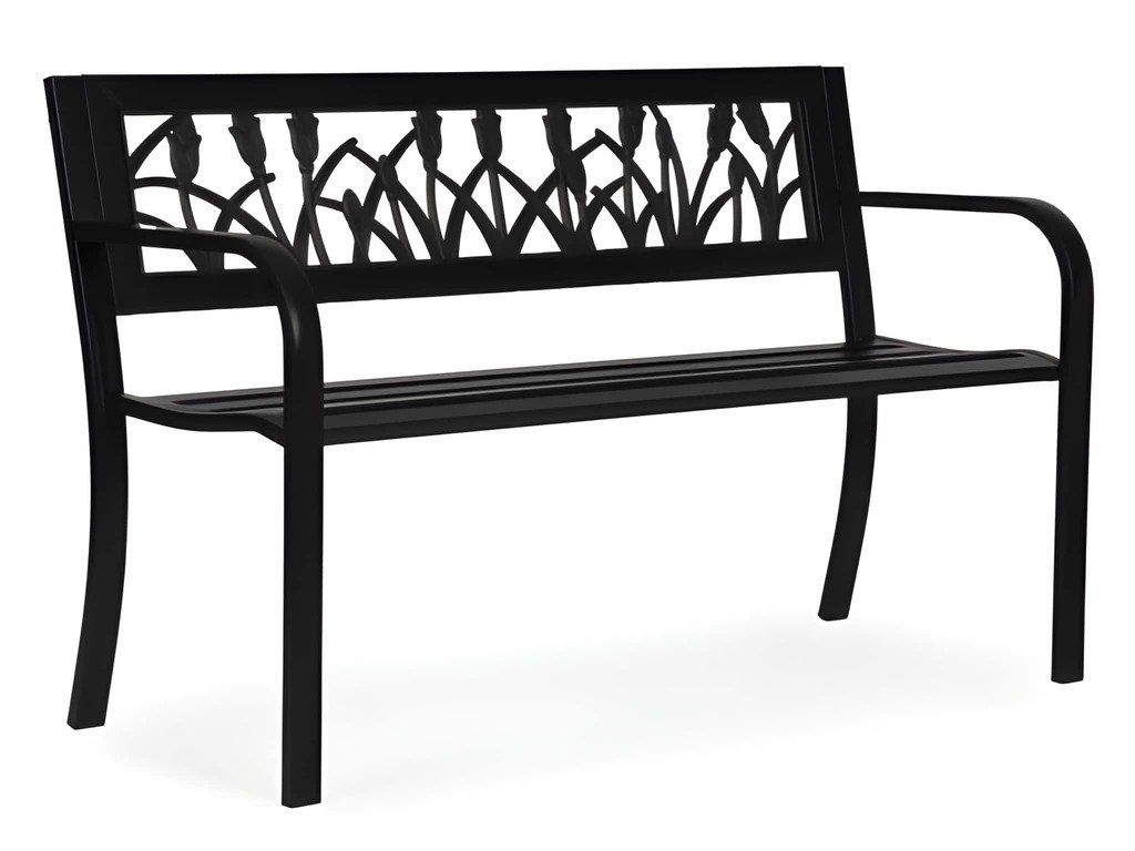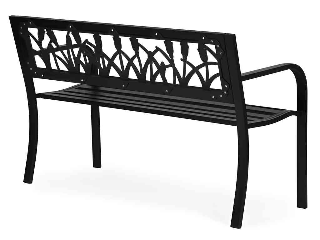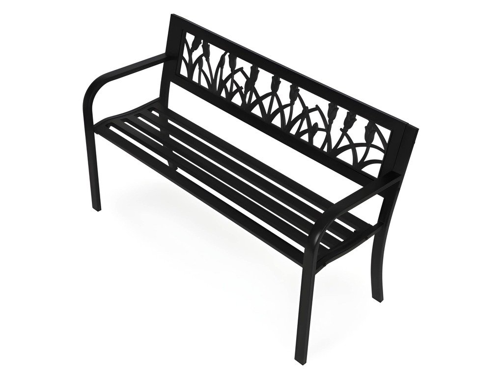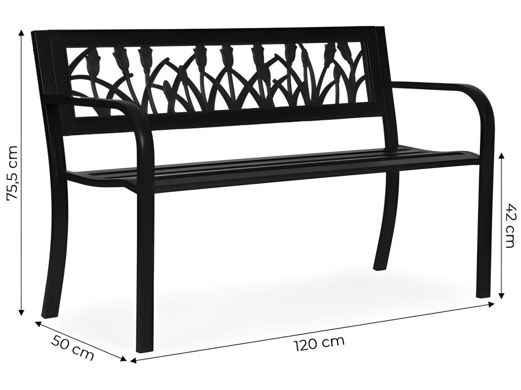 Záhradná lavica s operadlom určená do záhrad, na terasy a balkóny. Konštrukcia je vyrobená z práškovo lakovanej ocele, čo zvyšuje jej odolnosť voči poveternostným podmienkam. Ergonomické operadlo s dekoratívnou, odolnou PVC výplňou poskytuje pohodlnú oporu chrbta a zlepšuje estetiku nábytku. Protišmykové nožičky zlepšujú stabilitu a chránia podlahu pred poškriabaním. Tento model sa vyznačuje štýlovým kvetinovým vzorom, vďaka čomu je perfektným doplnkom do klasického aj moderného interiéru. Maximálna nosnosť je 260 kg, čo potvrdzuje pevnosť celej konštrukcie.